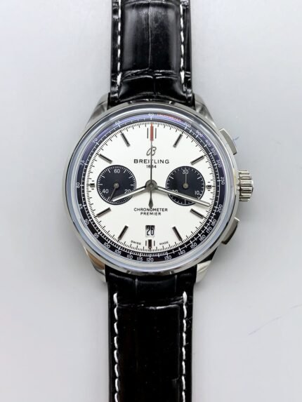 Breitling Premier B01 Chronograph Men’s Watch, Silver Panda Dial, Leather Strap(1:1 Super Clone)