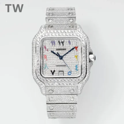 Cartier Santos Full Diamond Watch Silver