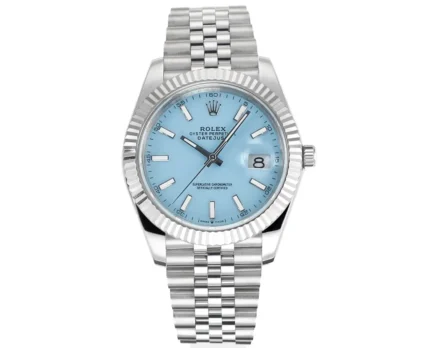 Rolex Datejust with 3235 Movement – Silver Stainless Steel, Ice Blue Dial, Fluted Bezel