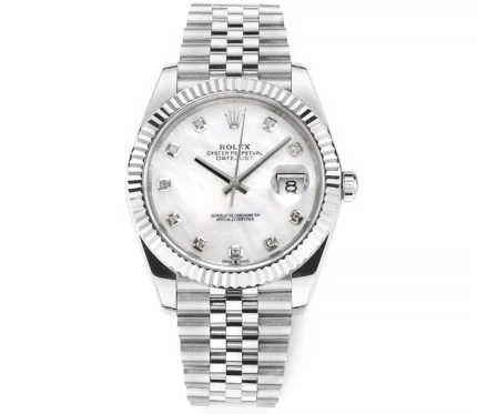 Rolex Datejust 41mm Silver Stainless Steel Watch with Diamond Dial, Fluted Bezel