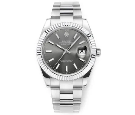 Rolex Datejust 41mm Watch – Silver with Grey Dial, Fluted Bezel