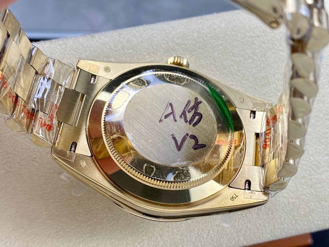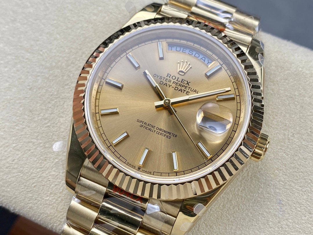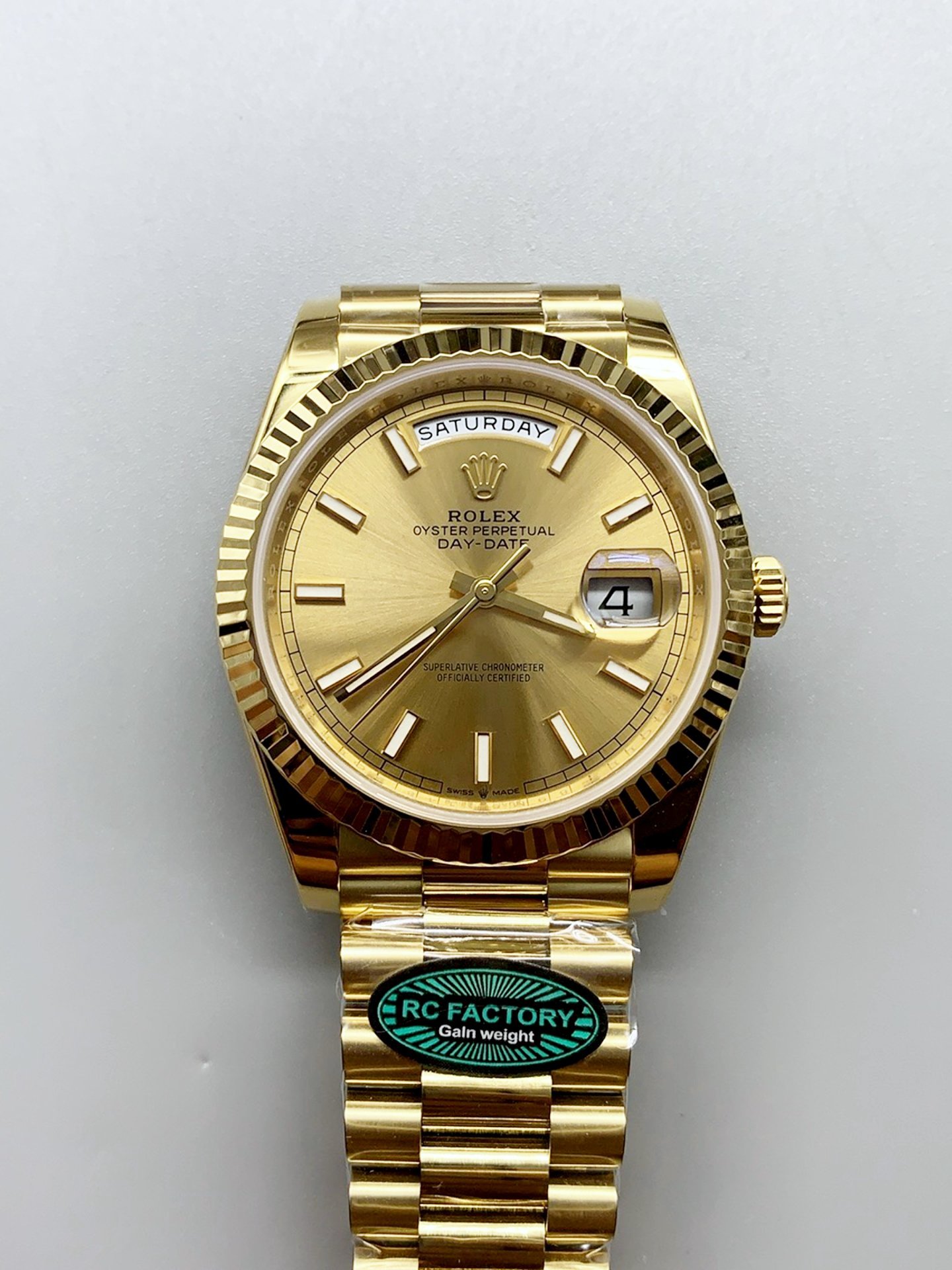 Specifications of the V2 version of 18k gold plated 40 Daydate Rolex Weekly Journal 1:1 Superclone 2836 Movement 40mm Counterweight day date gold face: