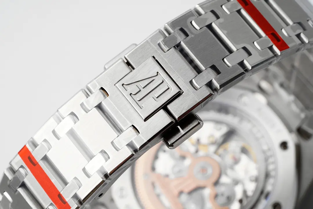 - The bracelet and case are integrated seamlessly, which is a hallmark design of Audemars Piguet.