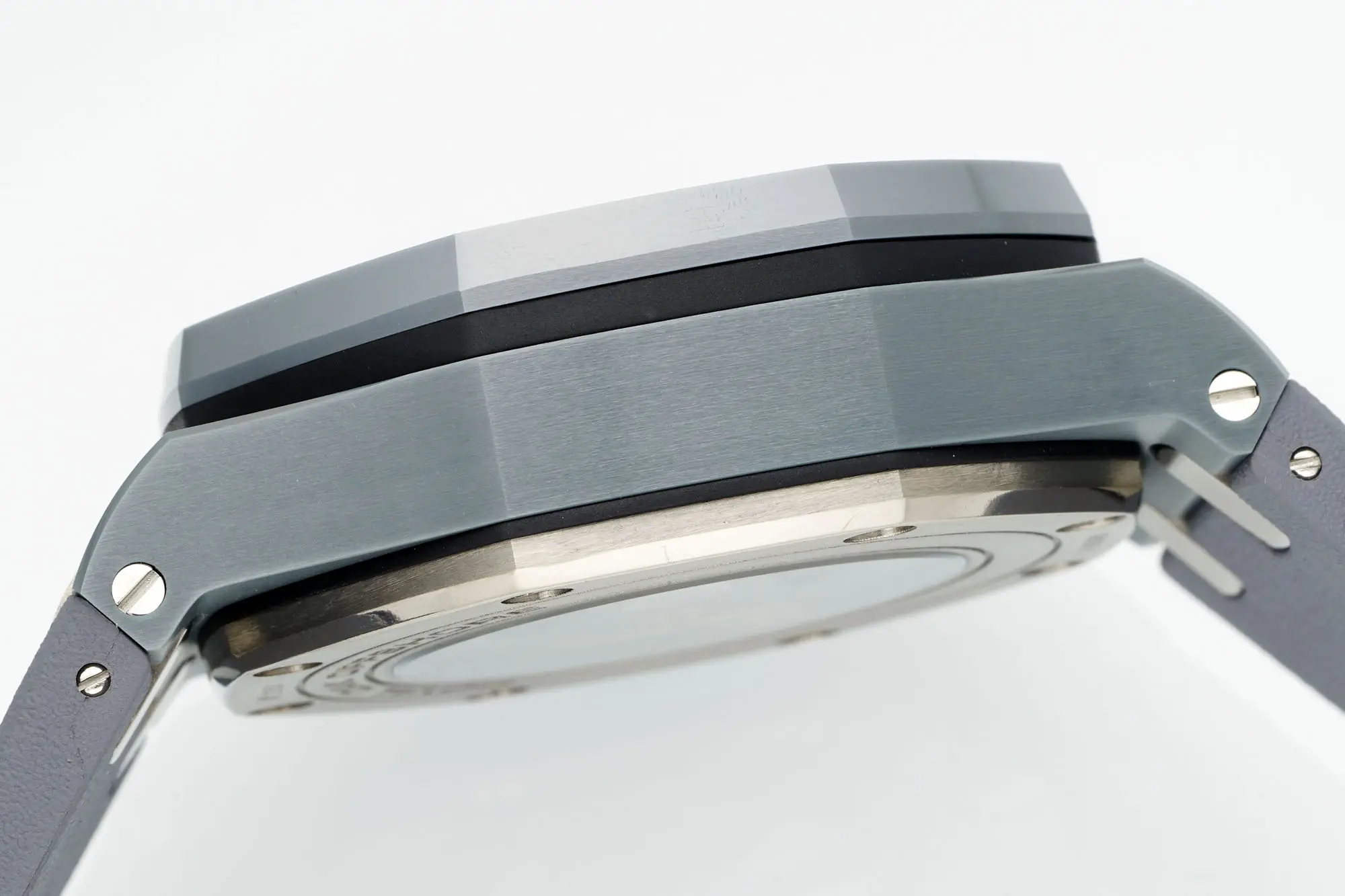 - The case is crafted with hexagonal screws that are flush to the surface of the bezel.
