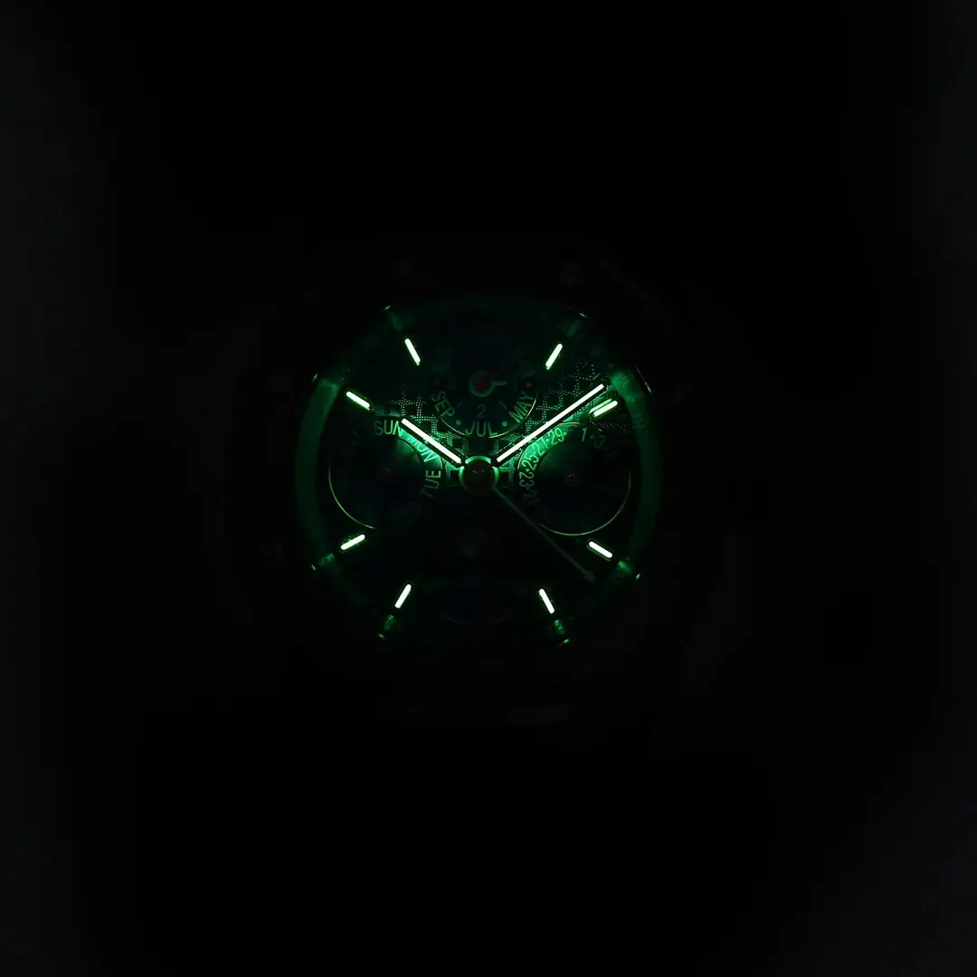 - Element Luminescent: Hour markers and hands have been coated in luminescent materials to improve readability under low-light conditions.