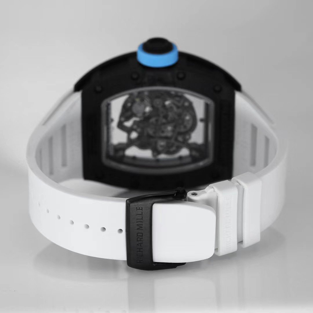 Best Replica RICHARD MILLE RM 055 Skeleton Watch – Swiss Movement Super Clone, Carbon Fiber Case, Sporty White Rubber Strap