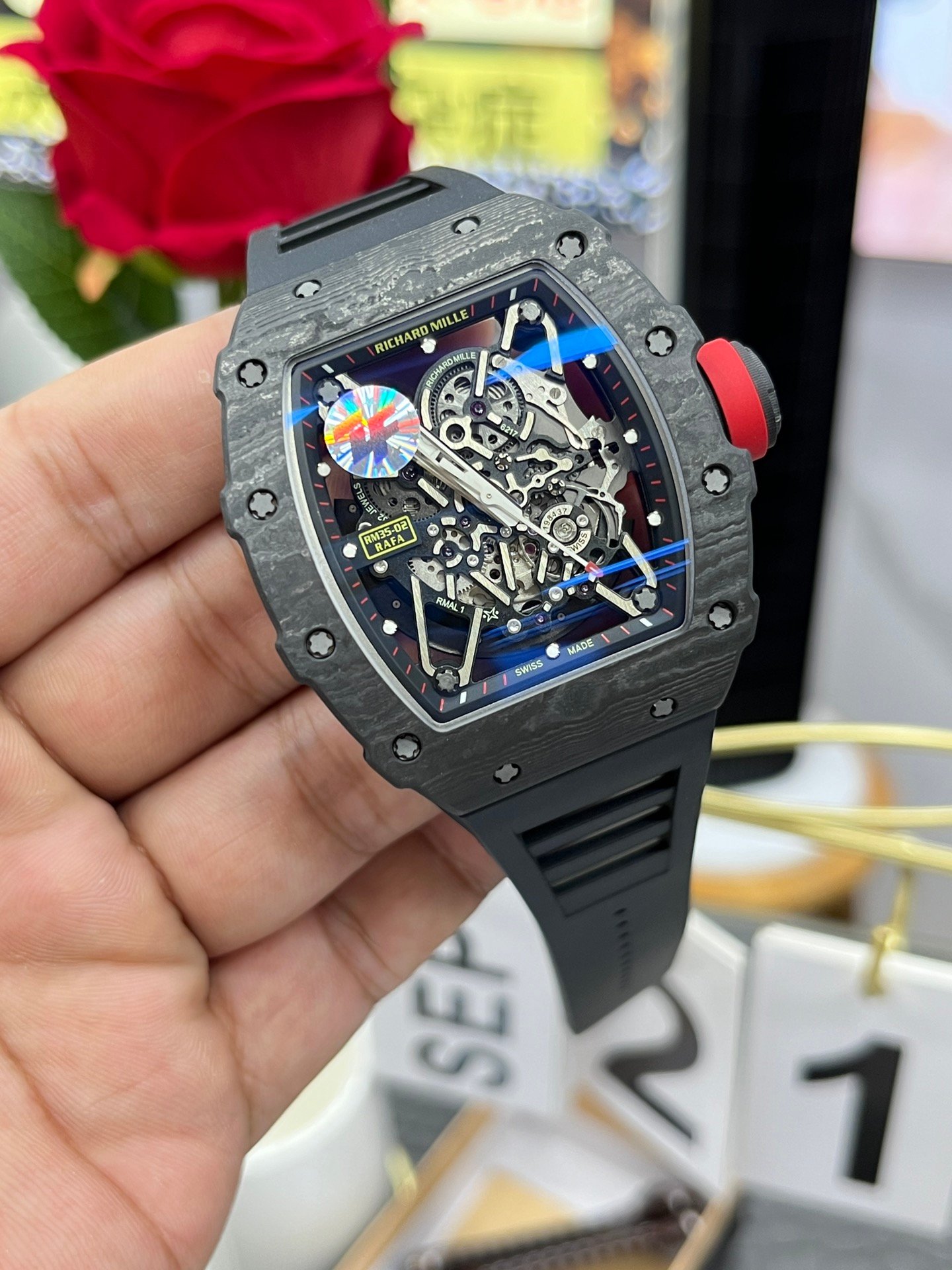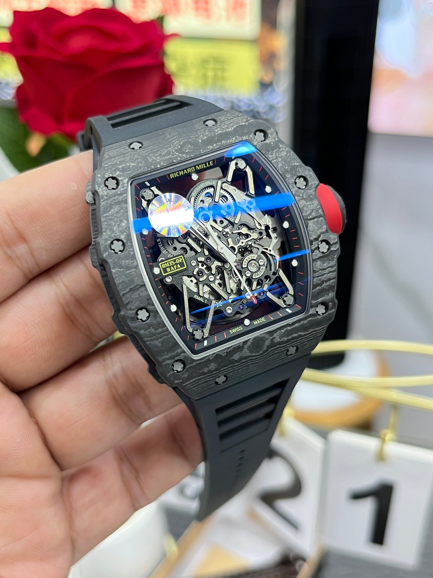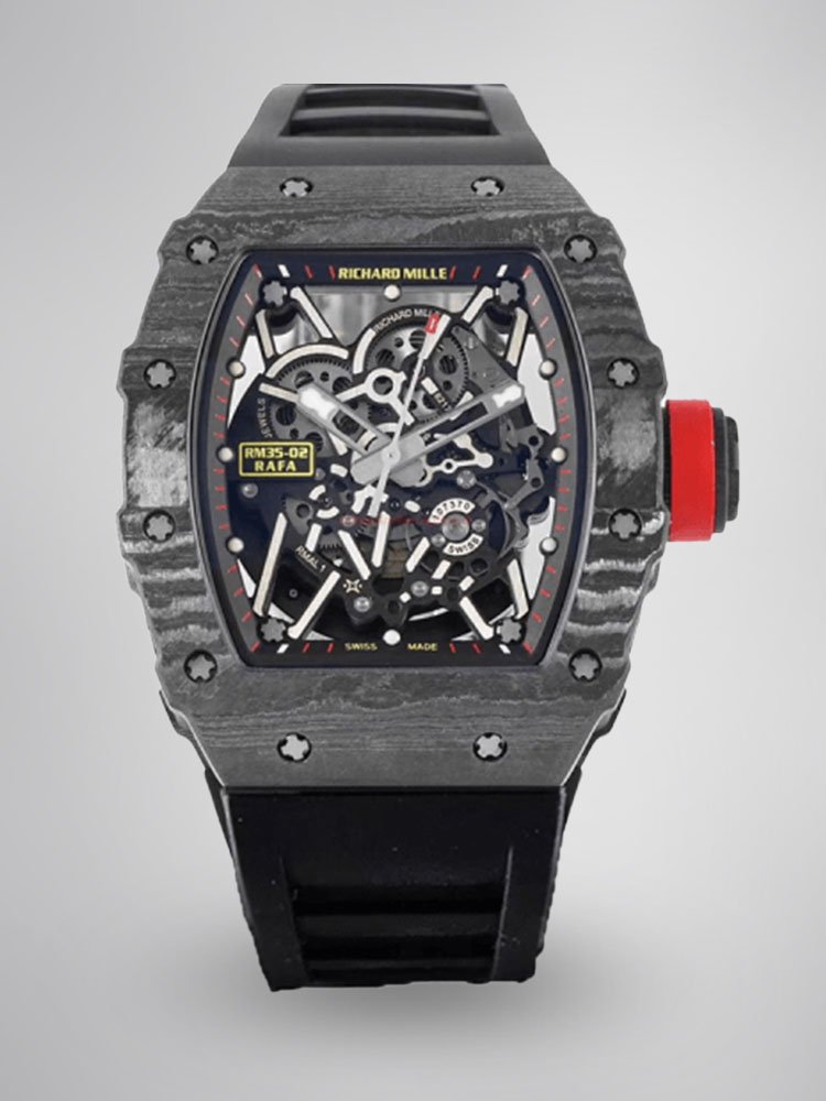 Best Richard Mille RM35-02 Carbon Fiber Skeleton Dial Swiss Replica Watch — Premium 1:1 super clone. Case: Titanium / carbon composite tonneau case. Crystal: Genuine sapphire crystal front and back. Movement: Clone RM caliber (skeletonized automatic). 12-month movement warranty. Free worldwide shipping on orders over $1,200.