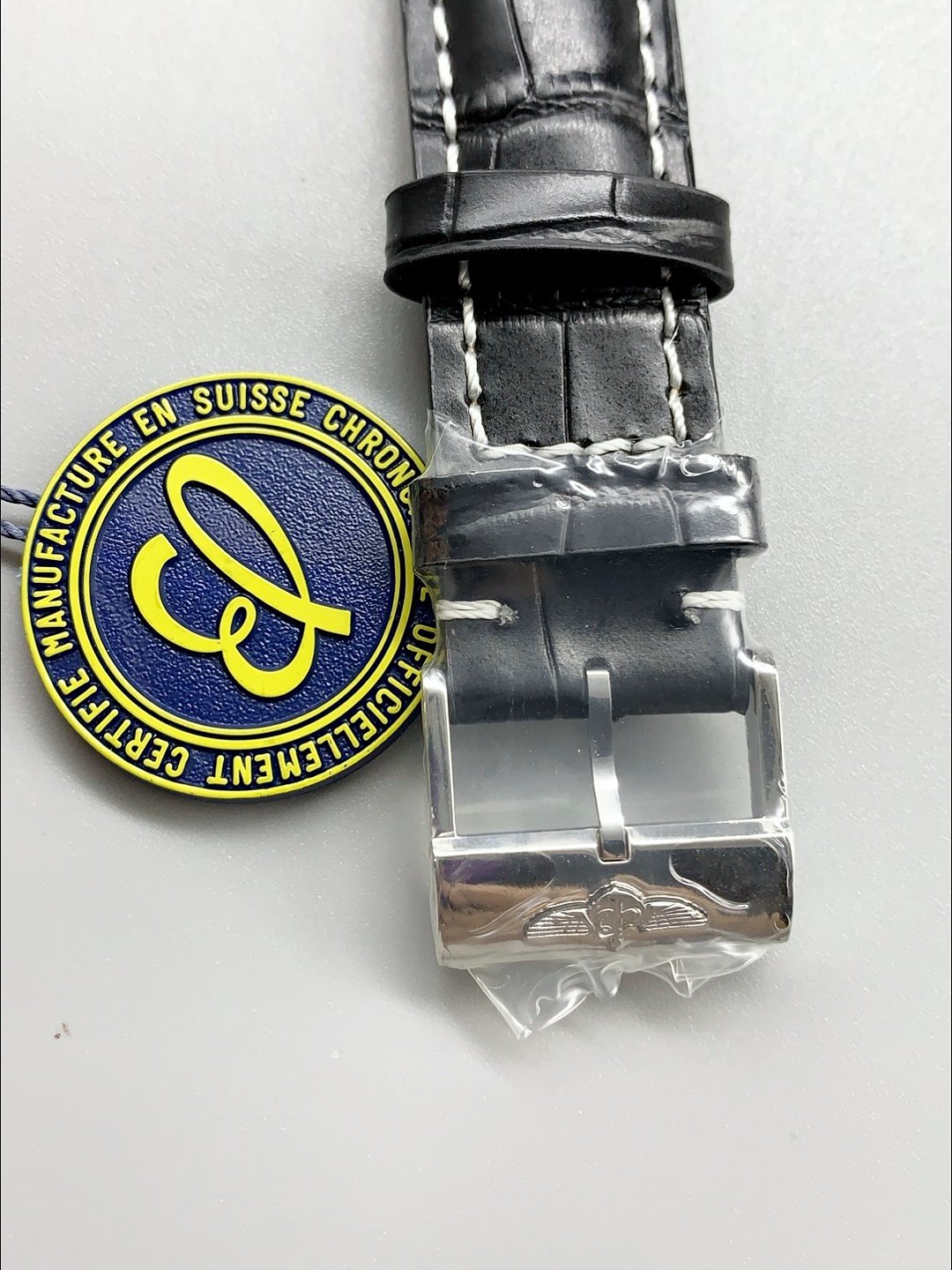 Genuine Leather Leather Strap with Stainless Steel Tang Buckle complete with Breitling Markings and Engravings