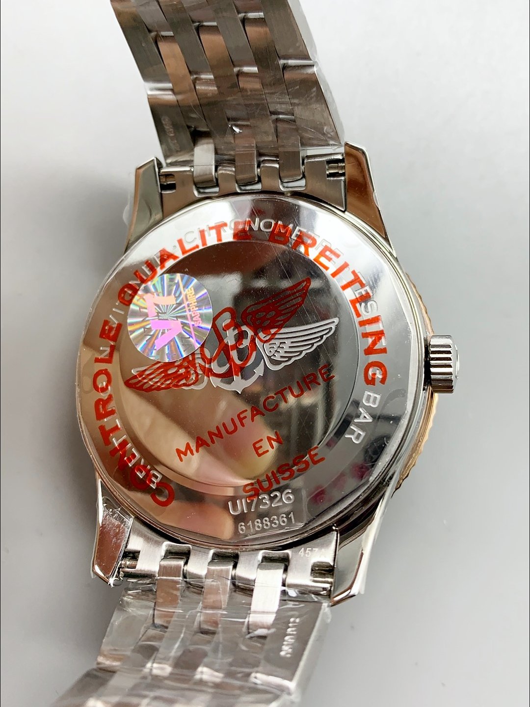 904L stainless steel case, engraved with the Breitling logo and lettering.