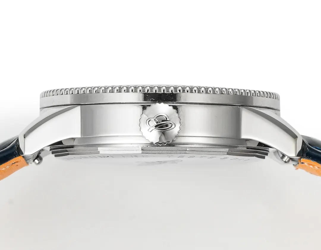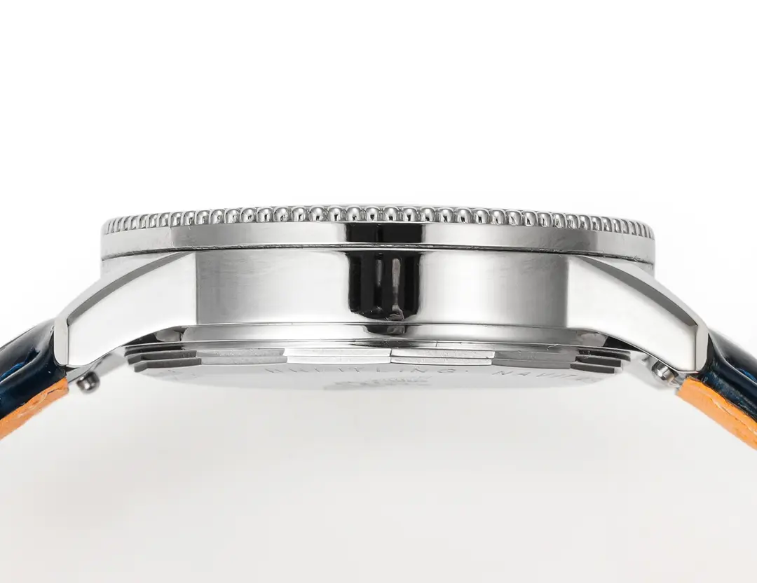 Breitling Navitimer Automatic Blue Leather — Premium 1:1 super clone. Case: 316L stainless steel case, brushed and polished finish. Crystal: Genuine sapphire crystal with AR coating. Movement: Swiss ETA 7750 column-wheel chronograph (28,800 bph). 12-month movement warranty. Free worldwide shipping on orders over $1,200.
