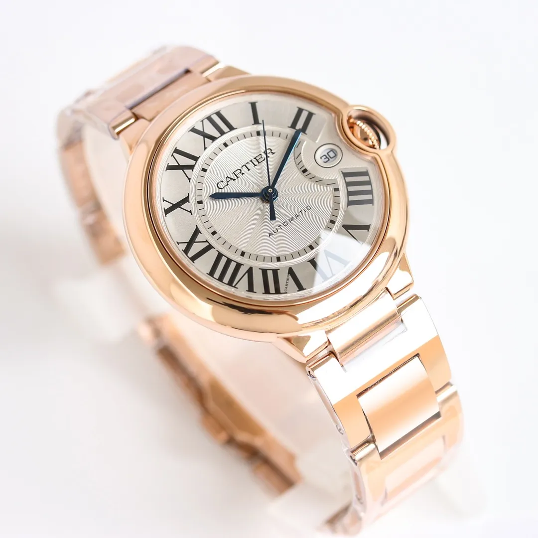 Cartier Ballon Bleu 40 Rose Gold — Premium 1:1 super clone. Case: Stainless steel case, silver-brushed or yellow gold PVD finish. Crystal: Genuine sapphire crystal with AR coating. Movement: Clone Cal. 1847 MC automatic. 12-month movement warranty. Free worldwide shipping on orders over $1,200.