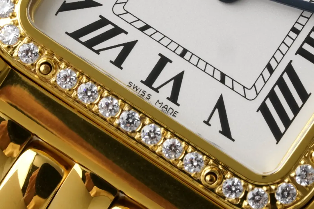 Cartier Panthere de Cartier Watch Gold Style — Premium 1:1 super clone. Case: Stainless steel case, silver-brushed or yellow gold PVD finish. Crystal: Genuine sapphire crystal with AR coating. Movement: Clone Cartier quartz caliber. 12-month movement warranty. Free worldwide shipping on orders over $1,200.