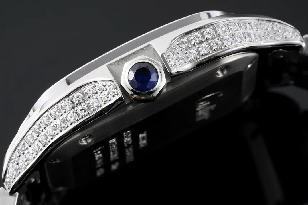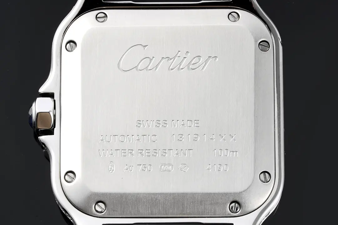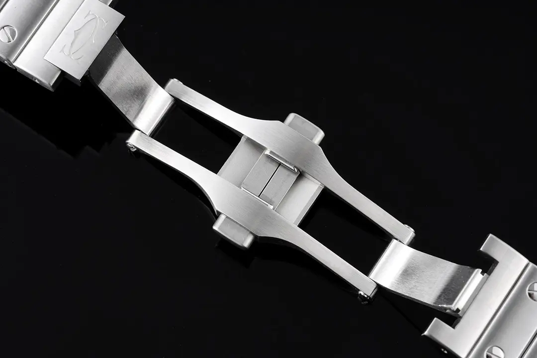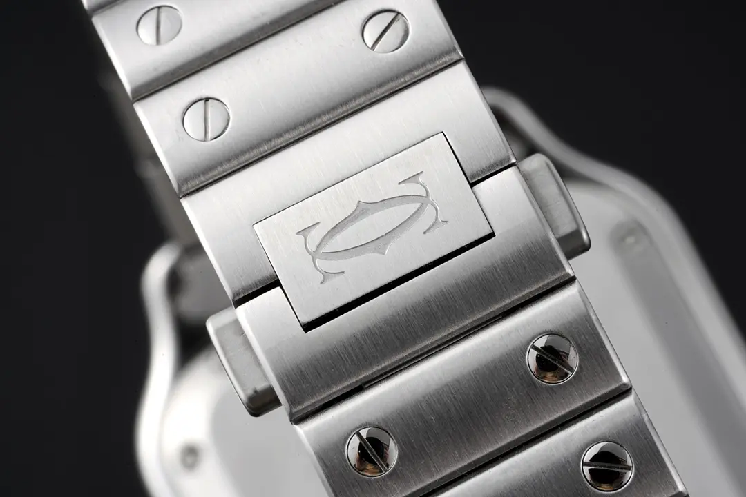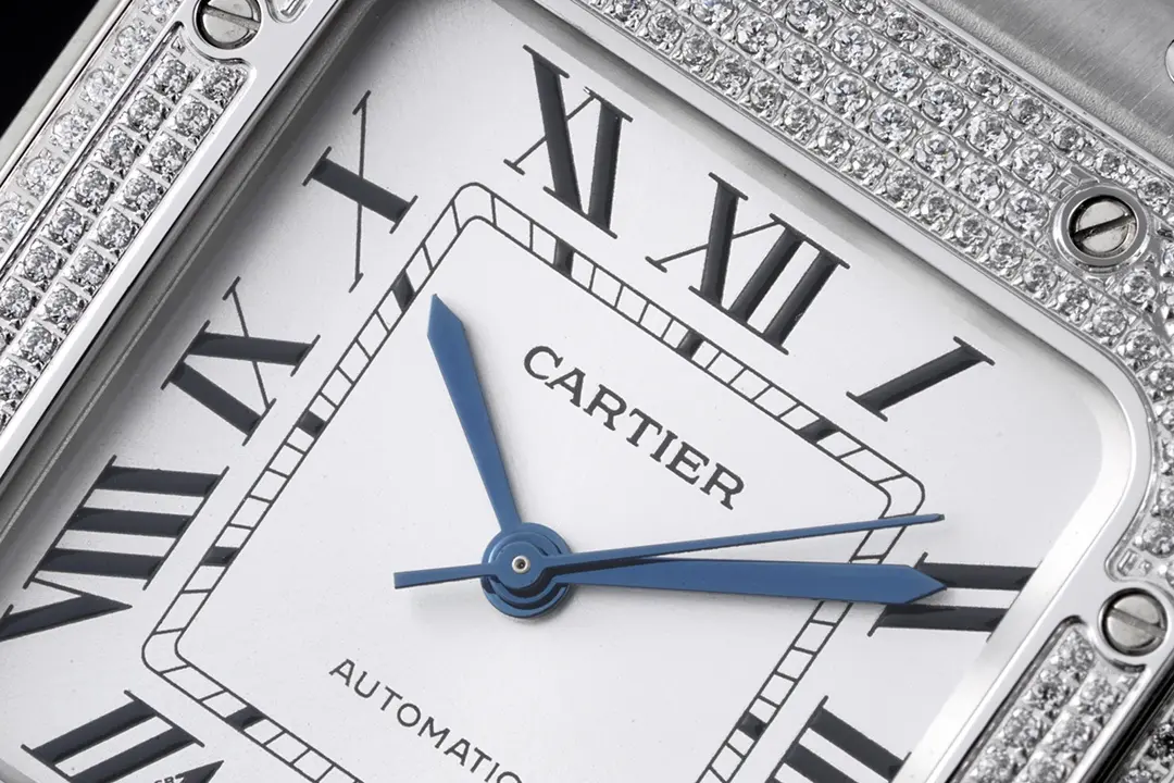 Cartier Santos de Cartier Watch Silver Classic — Premium 1:1 super clone. Case: Stainless steel case, silver-brushed or yellow gold PVD finish. Crystal: Genuine sapphire crystal with AR coating. Movement: Clone Cal. 1847 MC automatic (28,800 bph). 12-month movement warranty. Free worldwide shipping on orders over $1,200.