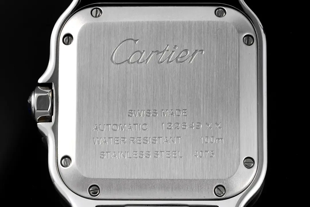 Cartier Santos de Cartier Watch Silver White — Premium 1:1 super clone. Case: Stainless steel case, silver-brushed or yellow gold PVD finish. Crystal: Genuine sapphire crystal with AR coating. Movement: Clone Cal. 1847 MC automatic (28,800 bph). 12-month movement warranty. Free worldwide shipping on orders over $1,200.