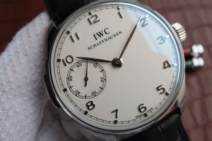 Portugal IW524204 men's watch, silver/gold scale. Original open mold Cal.95290 manual chain mechanical movement D: 43 mm case thickness: 12.3 mm. Psoriate strap. Mirror material: double-sided sapphire crystal glass Weight: 127g waterproof depth: 100m