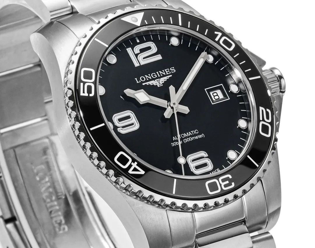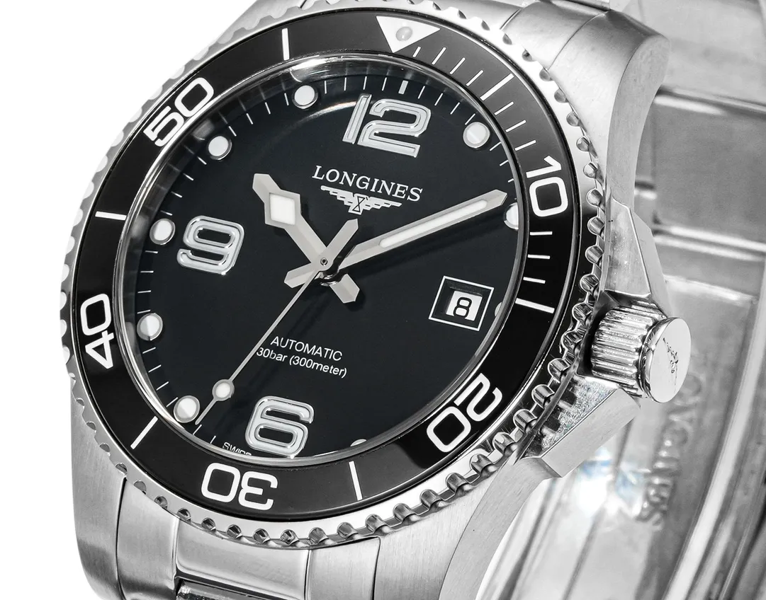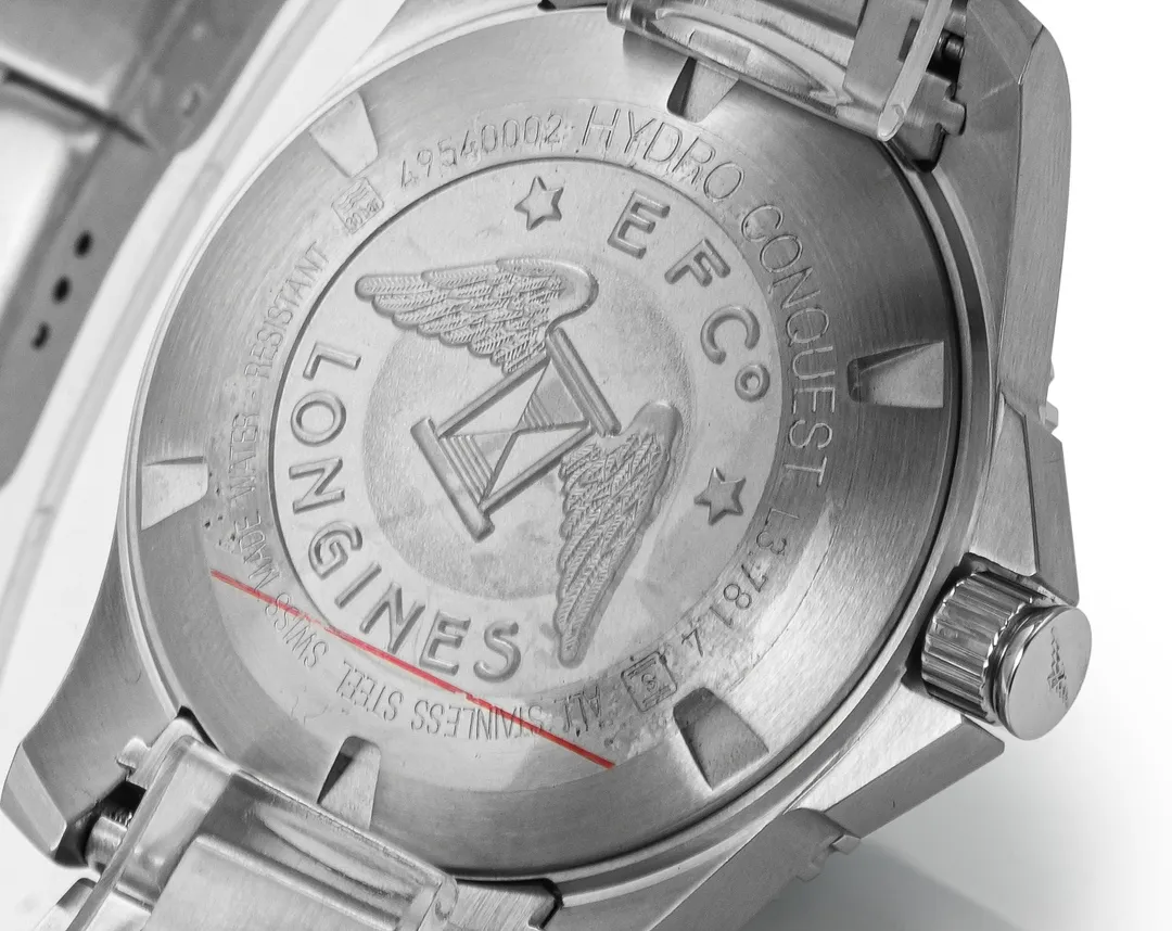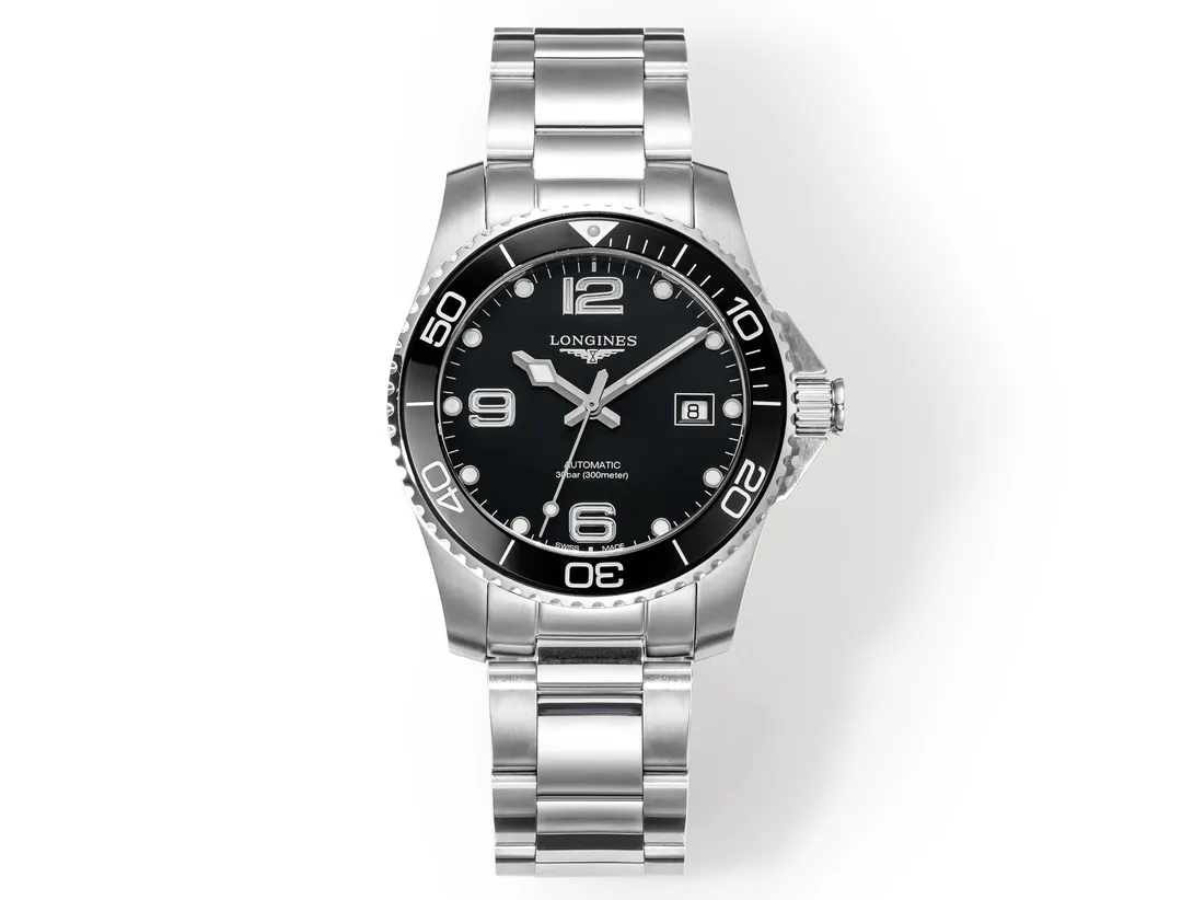 Longines Conquest Black Dial Steel Watch — Premium 1:1 super clone. Case: 316L stainless steel case and bracelet. Crystal: Genuine sapphire crystal. Movement: Swiss ETA movement (automatic). 12-month movement warranty. Free worldwide shipping on orders over $1,200.