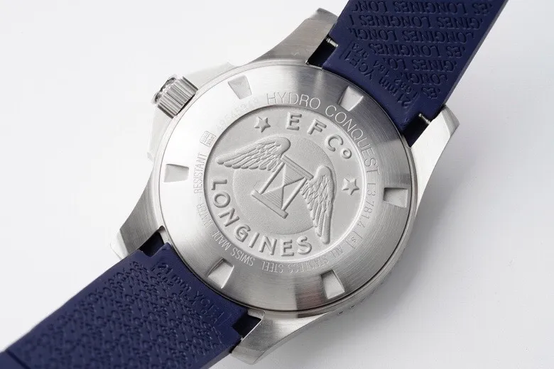 Longines Conquest Blue Dial Rubber Strap — Premium 1:1 super clone. Case: 316L stainless steel case and bracelet. Crystal: Genuine sapphire crystal. Movement: Swiss ETA movement (automatic). 12-month movement warranty. Free worldwide shipping on orders over $1,200.