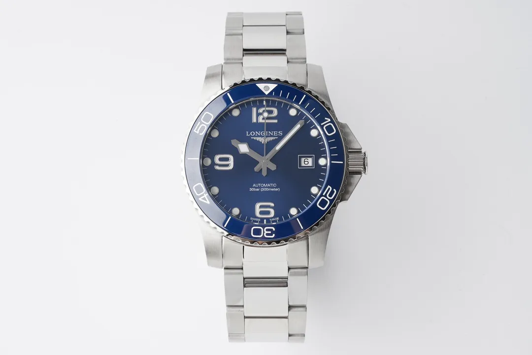 Longines Conquest Blue Dial Stainless Steel — Premium 1:1 super clone. Case: 316L stainless steel case and bracelet. Crystal: Genuine sapphire crystal. Movement: Swiss ETA movement (automatic). 12-month movement warranty. Free worldwide shipping on orders over $1,200.