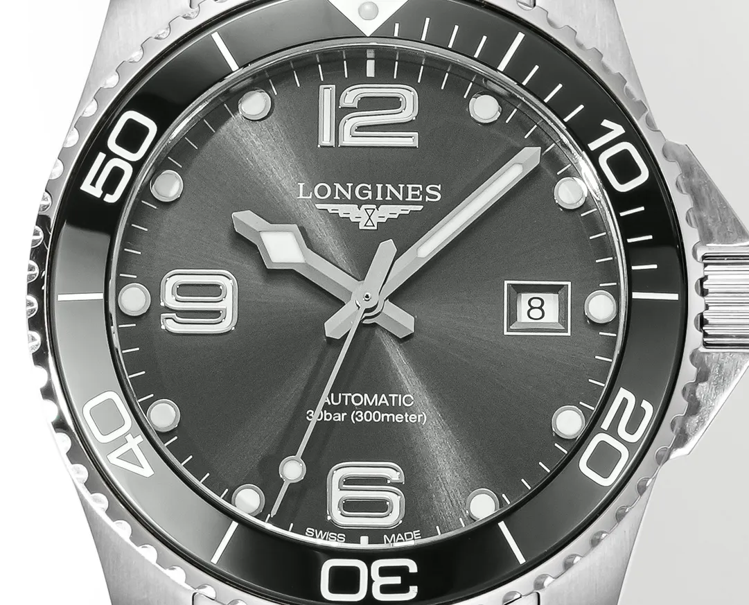 Longines Conquest Grey Dial Automatic — Premium 1:1 super clone. Case: 316L stainless steel case and bracelet. Crystal: Genuine sapphire crystal. Movement: Swiss ETA movement (automatic). 12-month movement warranty. Free worldwide shipping on orders over $1,200.