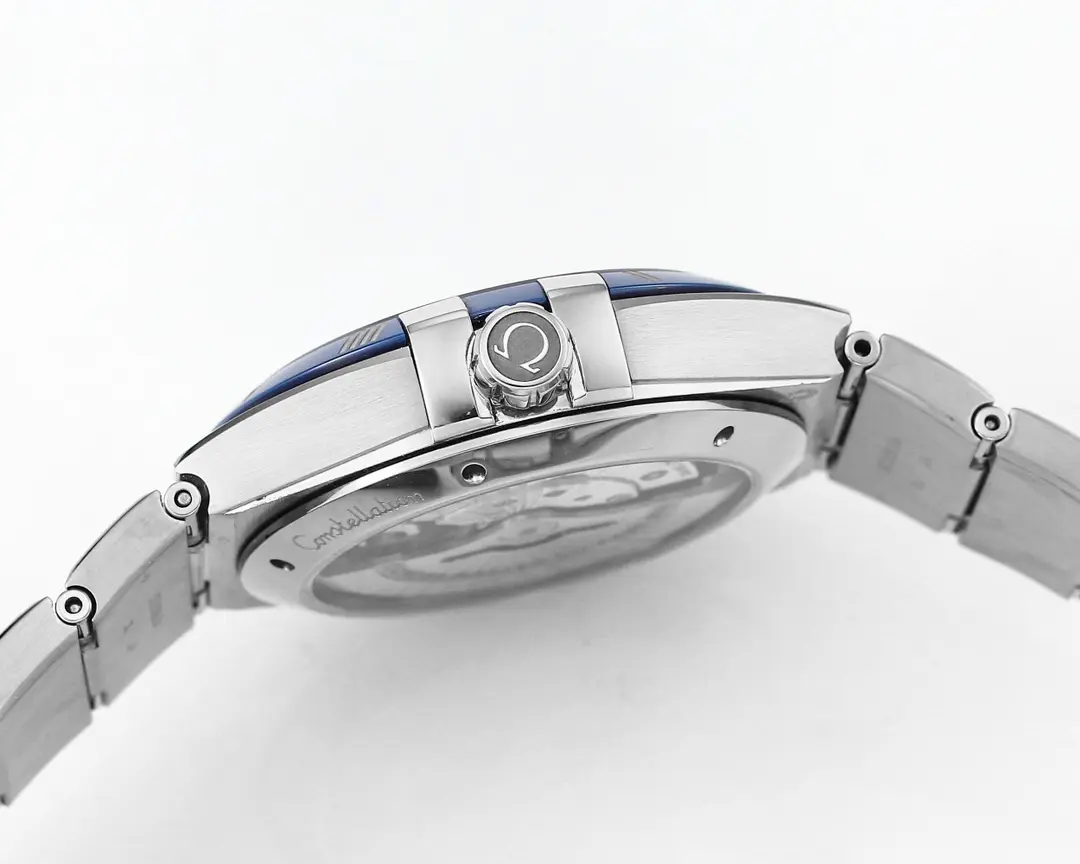 Omega Constellation 41mm Blue Dial Steel — Premium 1:1 super clone. Case: 316L stainless steel case with brushed/polished finish. Crystal: Genuine sapphire crystal with AR coating. Movement: Swiss ETA 2824-2 (28,800 bph, date). 12-month movement warranty. Free worldwide shipping on orders over $1,200.