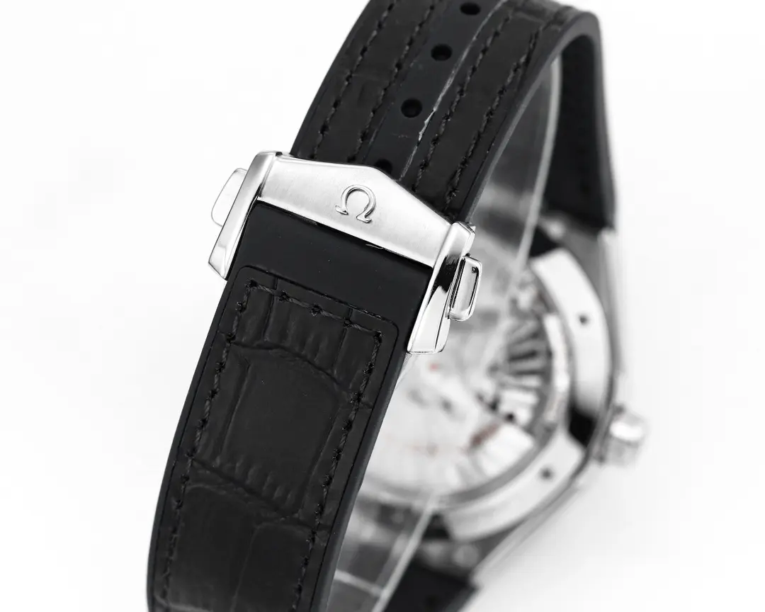Omega Constellation Meteorite Watch Black Leather — Premium 1:1 super clone. Case: 316L stainless steel case with brushed/polished finish. Crystal: Genuine sapphire crystal with AR coating. Movement: Swiss ETA 2824-2 (28,800 bph, date). 12-month movement warranty. Free worldwide shipping on orders over $1,200.