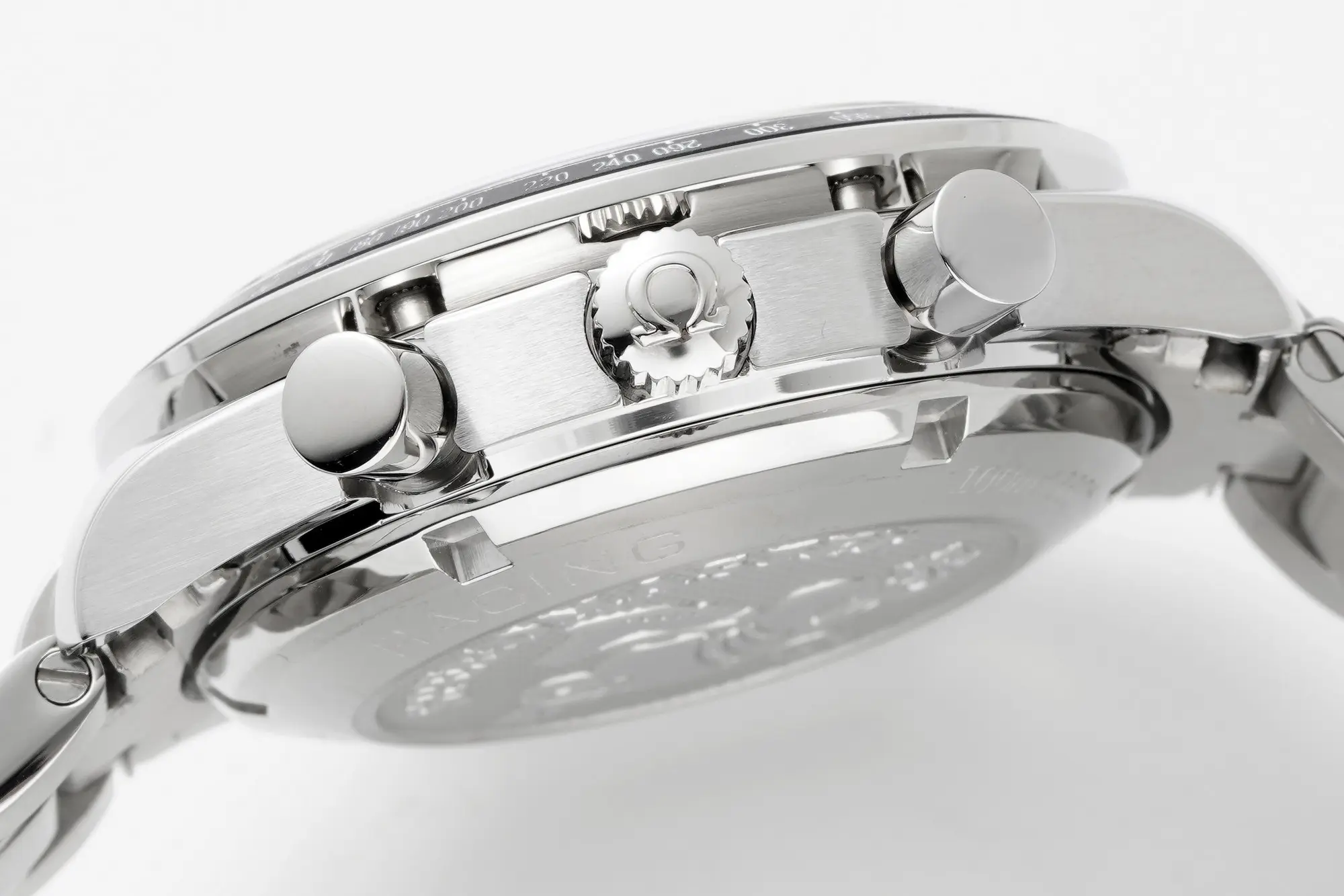 Omega Speedmaster 326.32.40.50.06.001 Black Chronograph — Premium 1:1 super clone. Case: 316L stainless steel case with brushed/polished finish. Crystal: Genuine sapphire crystal with AR coating. Movement: Clone Cal. 3861 manual-wind chronograph or ETA 7750. 12-month movement warranty. Free worldwide shipping on orders over $1,200.