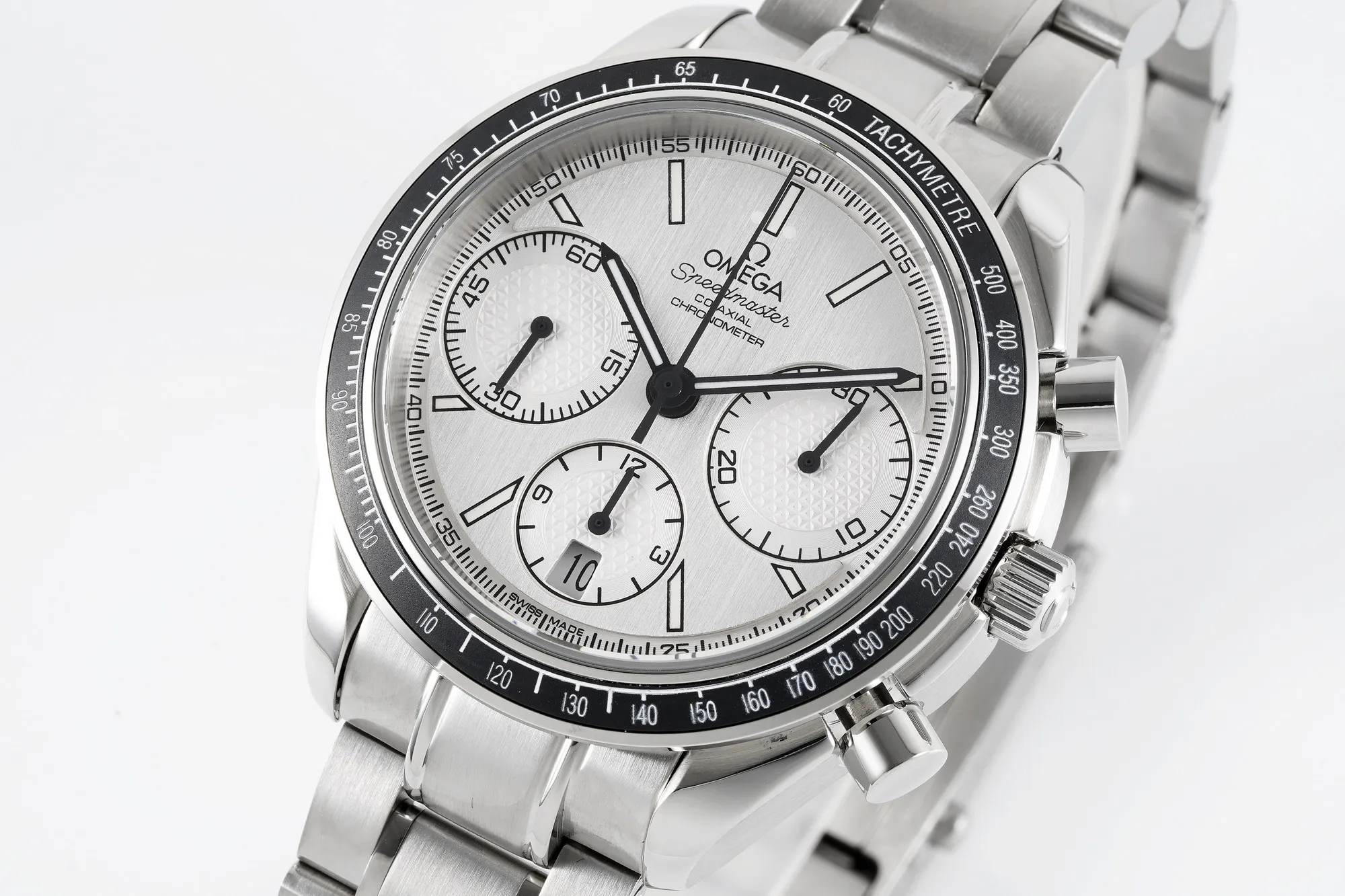 Omega Speedmaster 326.32.40.50.06.001 Silver — Premium 1:1 super clone. Case: 316L stainless steel case with brushed/polished finish. Crystal: Genuine sapphire crystal with AR coating. Movement: Clone Cal. 3861 manual-wind chronograph or ETA 7750. 12-month movement warranty. Free worldwide shipping on orders over $1,200.