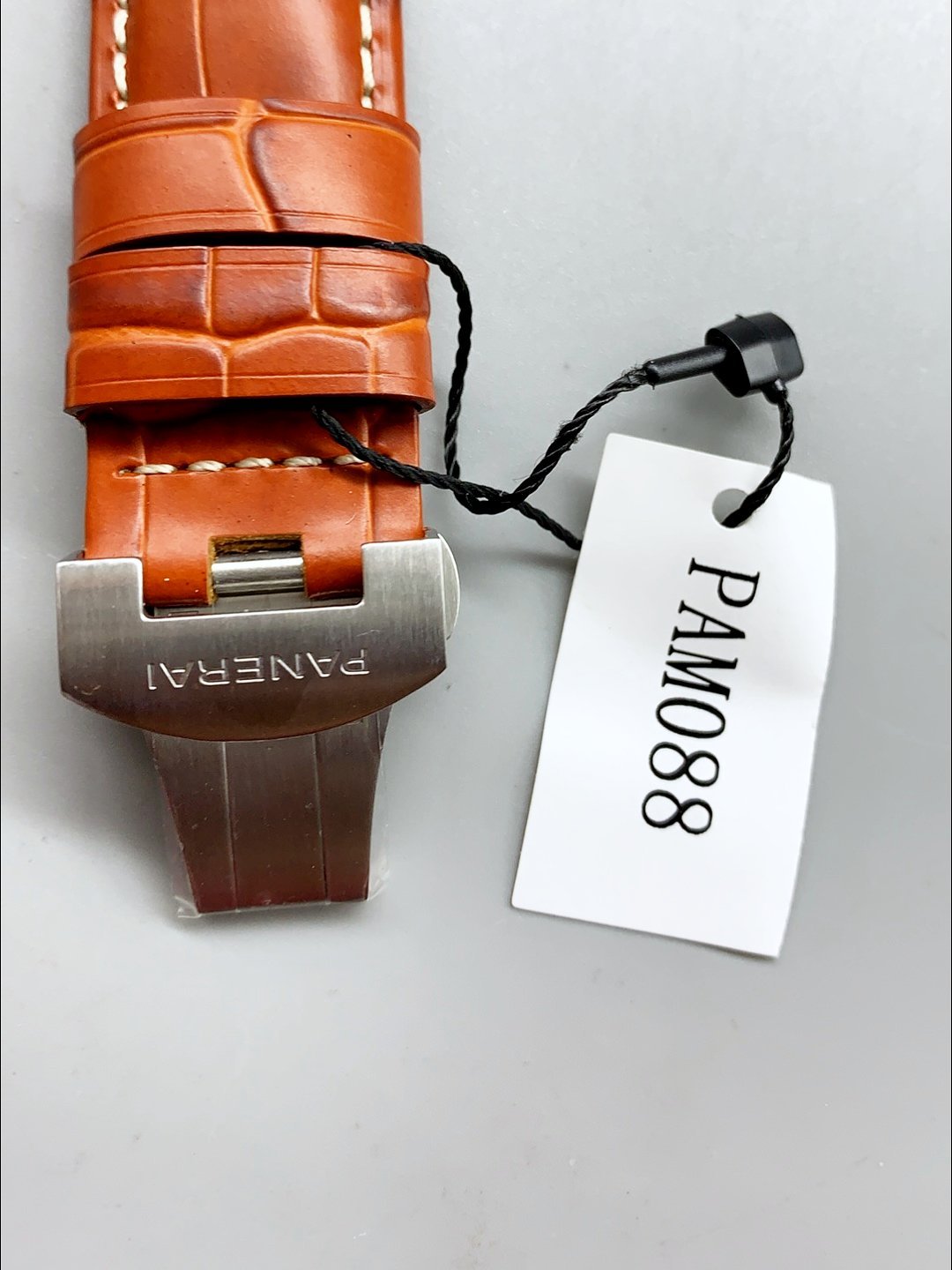 Strap: Genuine Brown Leather Strap with Panerai Markings and engravings