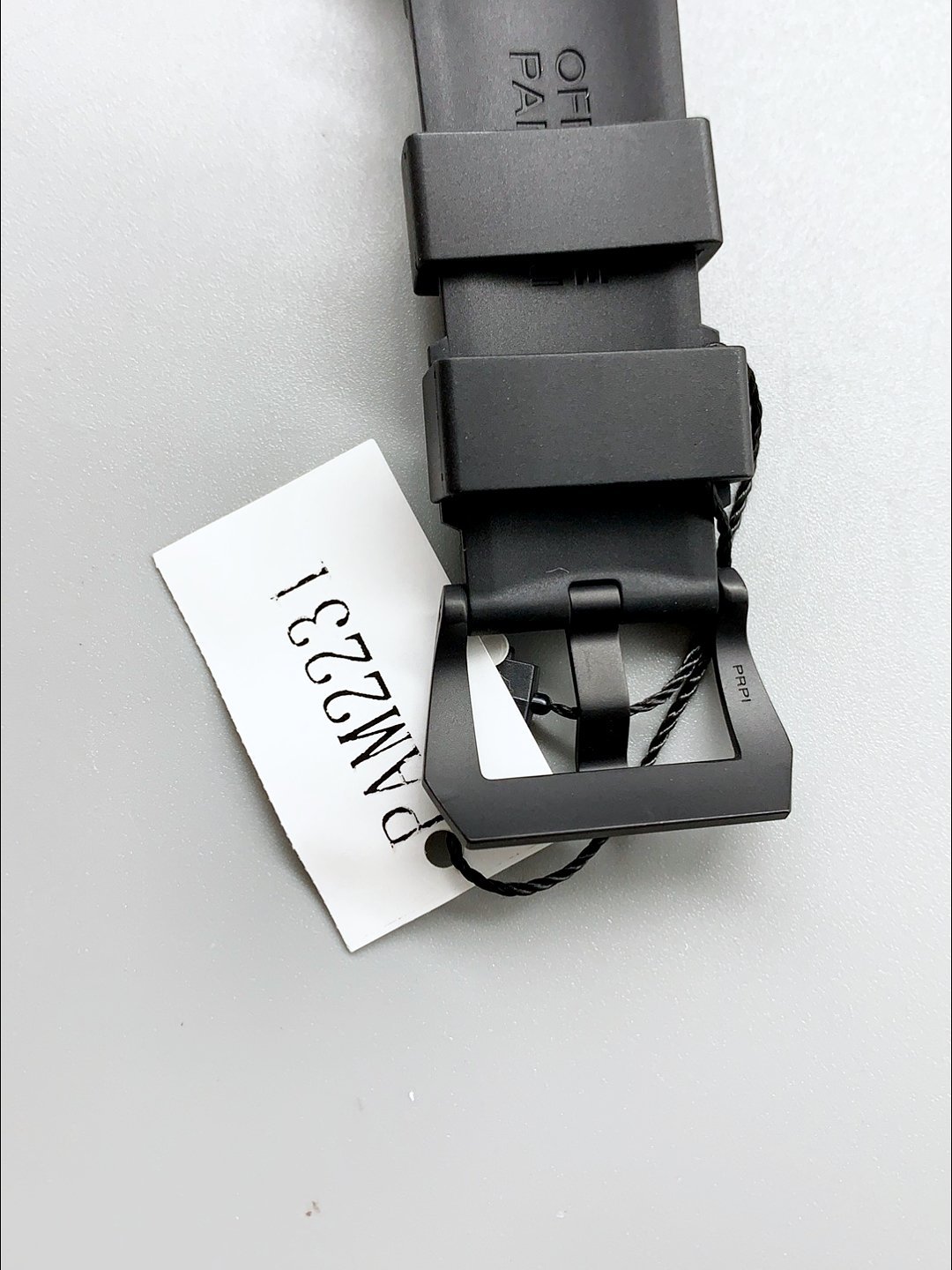 Black Rubber Strap with Tang Buckle complete with Panerai Markings/Engravings