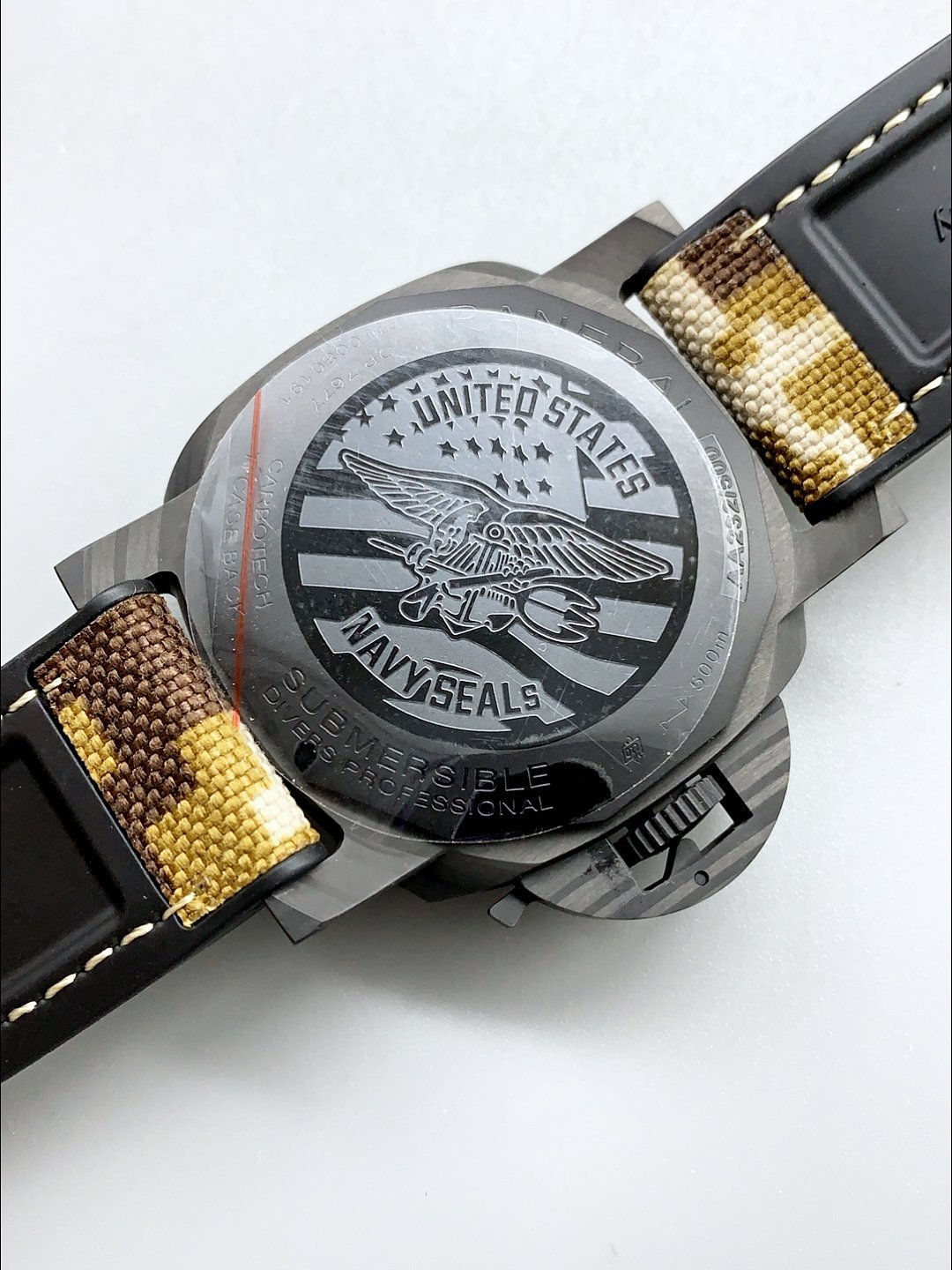 Camo Hybrid Leather/Rubber Strap with Steel Tang Buckle complete with Panerai Markings and Engravings