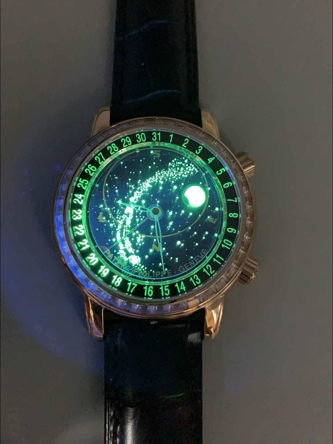 Black Sky Moon Celestial Dial with Date Numerals around the Dial.