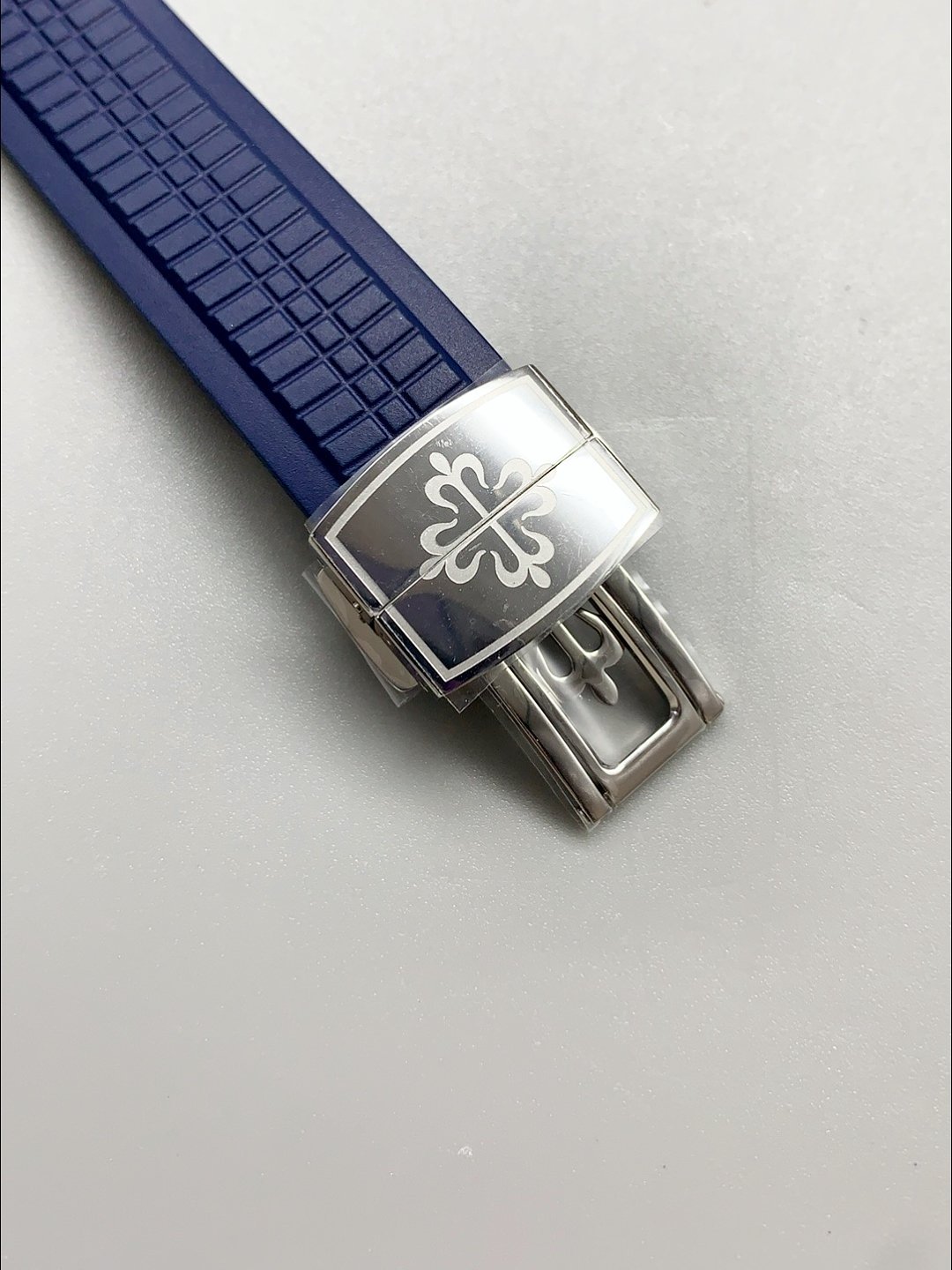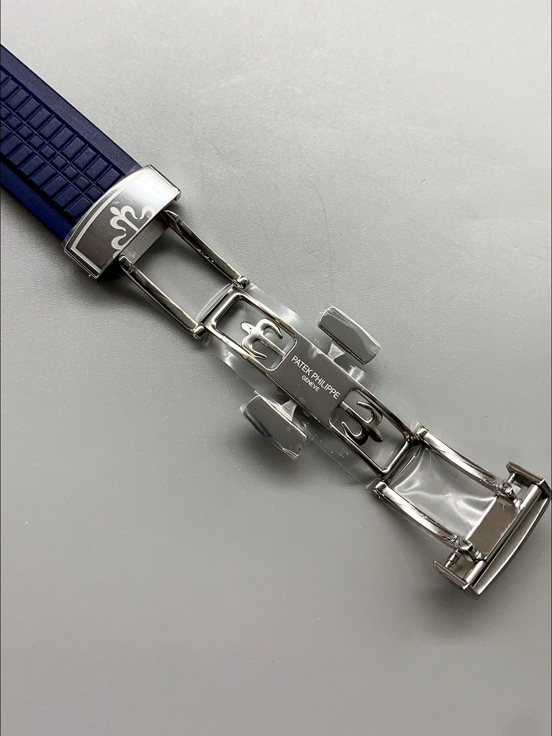 Genuine Rubber Strap complete with Patek Philippe Markings and Engravings complete with Patek Philippe Signature Folding Clasps as per the genuine