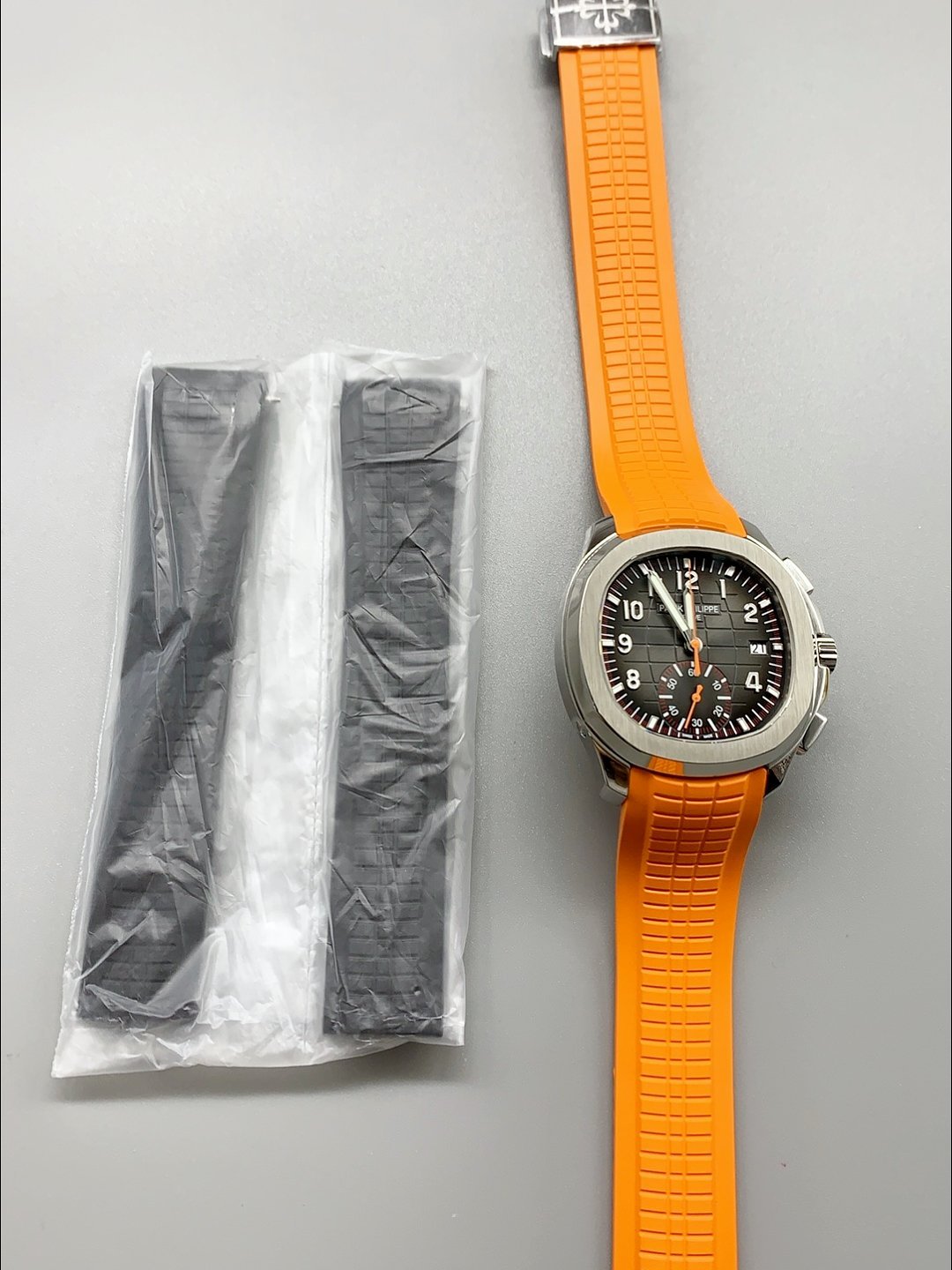 Patek Philippe Aquanaut 5968 Chronograph Steel Casing Orange Strap Watch(1:1 Super Clone)