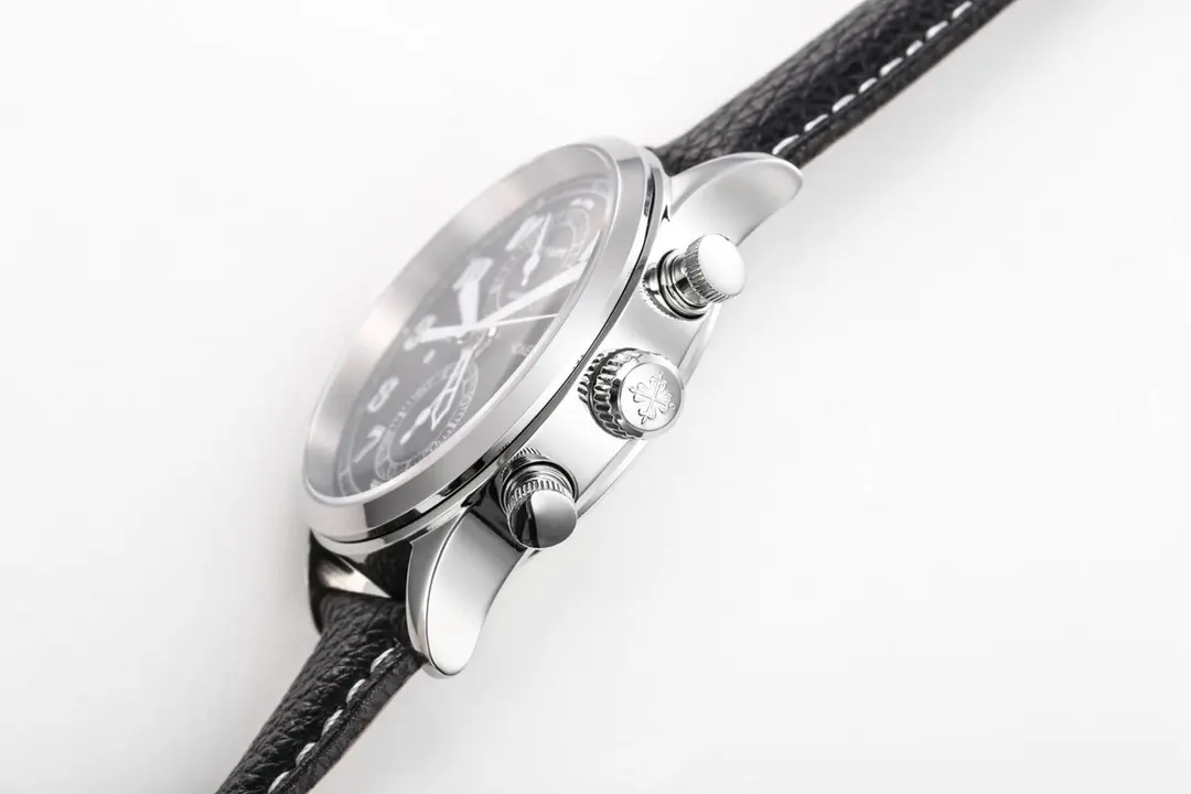 Patek Philippe Complications 5924G Black Leather — Premium 1:1 super clone. Case: 904L stainless steel or 18k gold case. Crystal: Genuine sapphire crystal with AR coating. Movement: Clone Patek caliber (mechanical automatic). 12-month movement warranty. Free worldwide shipping on orders over $1,200.