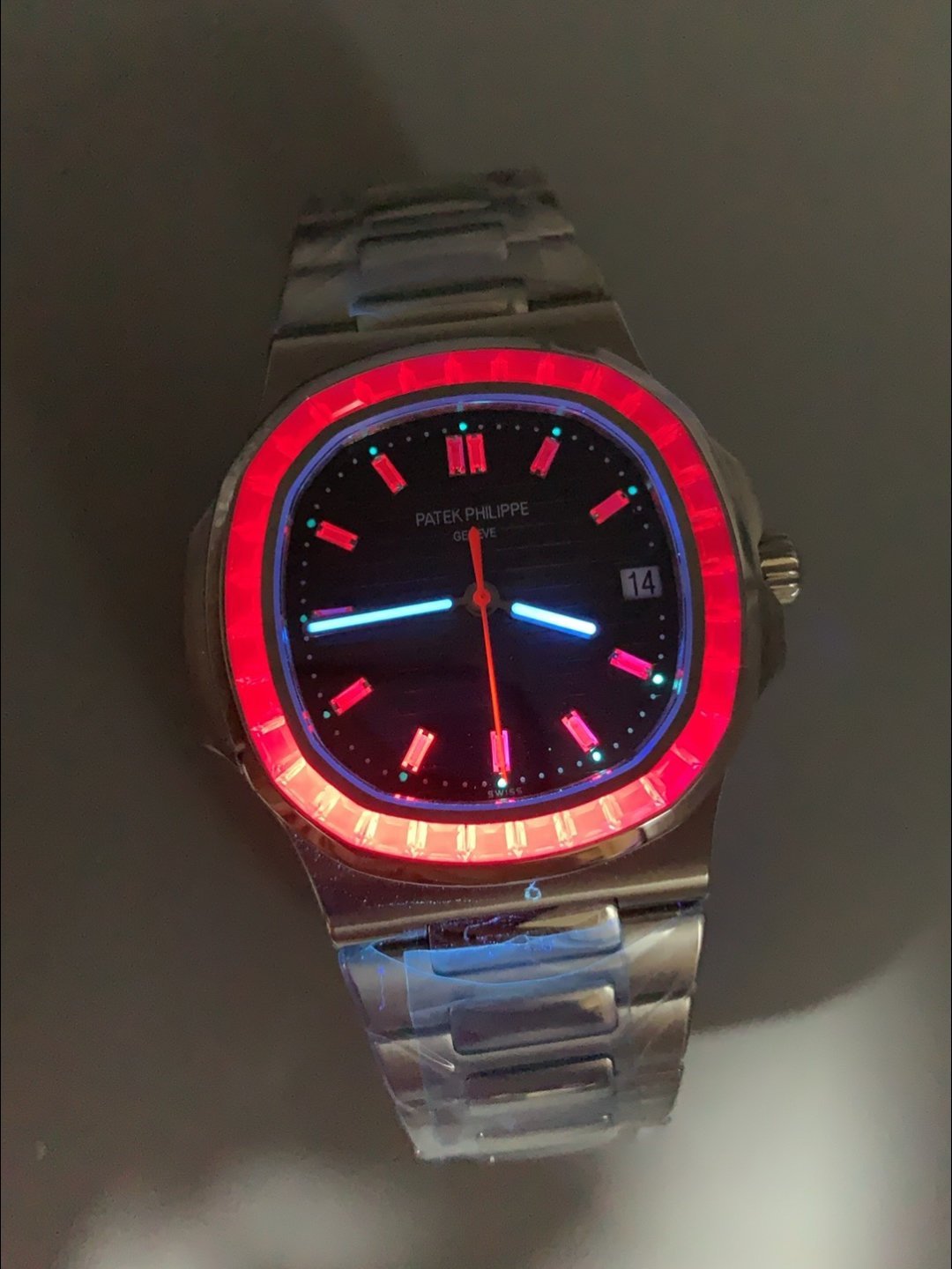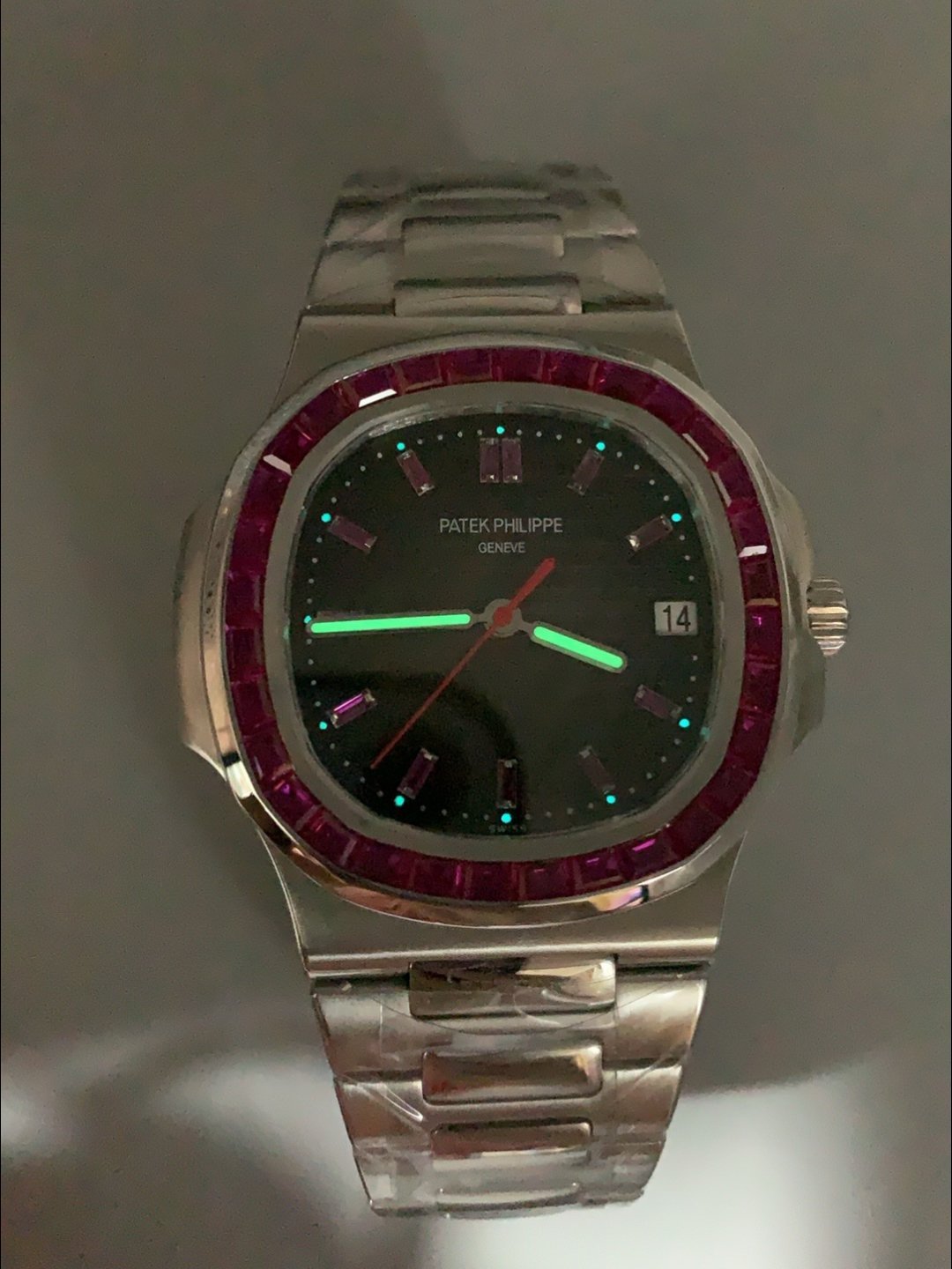 Patek Philippe Nautilus 5711 Black Dial 904L Steel with Rubies Bezel(1:1Super Clone)