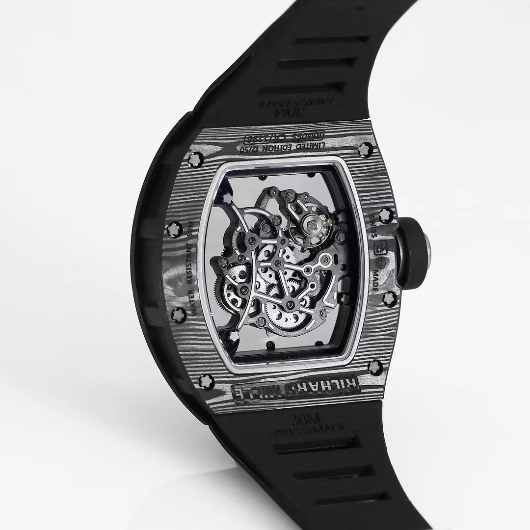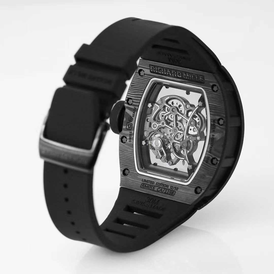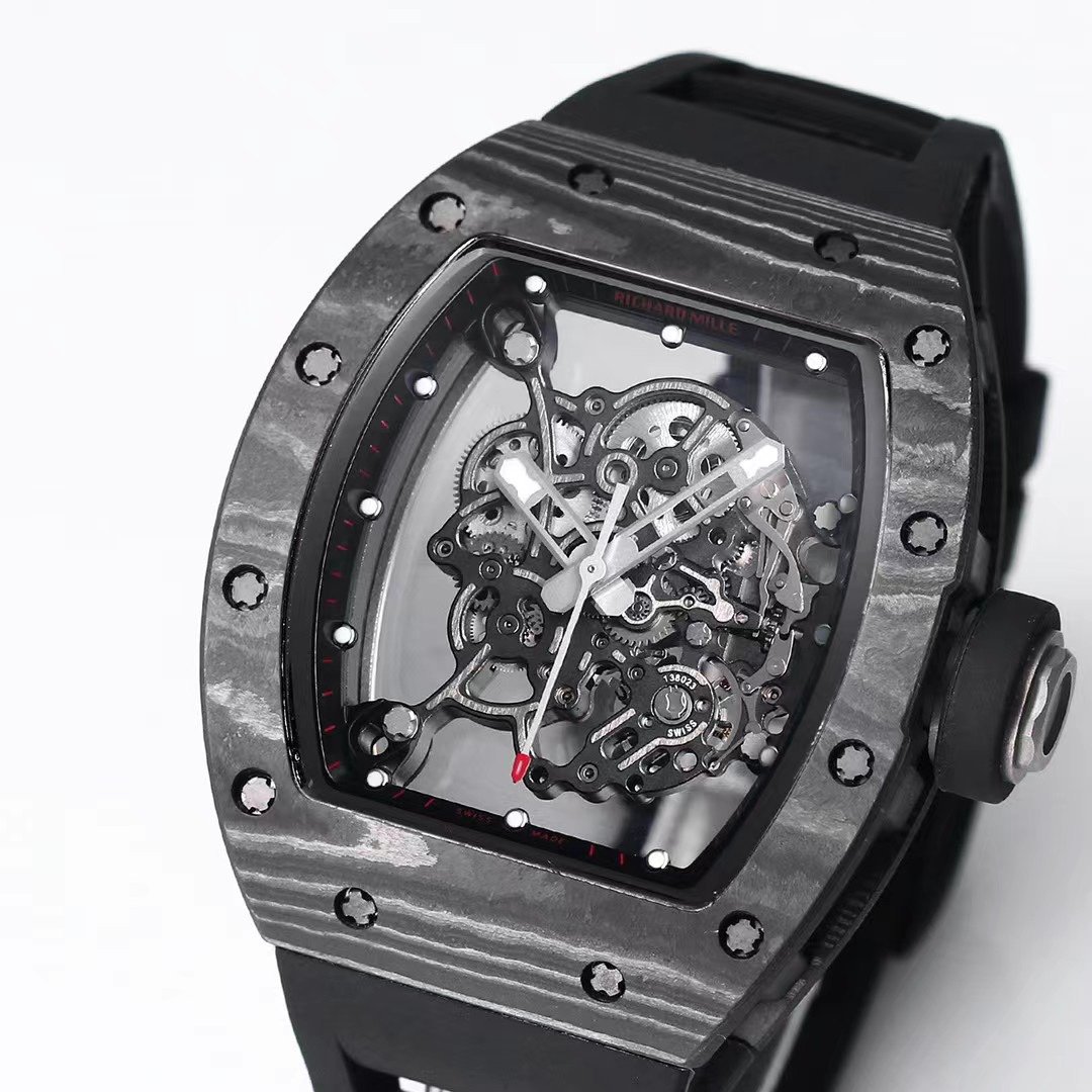 Here Comes the Best Swiss RM055 Carbon Fiber Replica, a high-grade AAAA grade replica watch designed specifically for collectors who insist on the very best in sophistication and durability. When it comes to size, the super clone is 49.90 x 42.70mm and its thickness is 13.5mm, exactly the same as the genuine RM055.