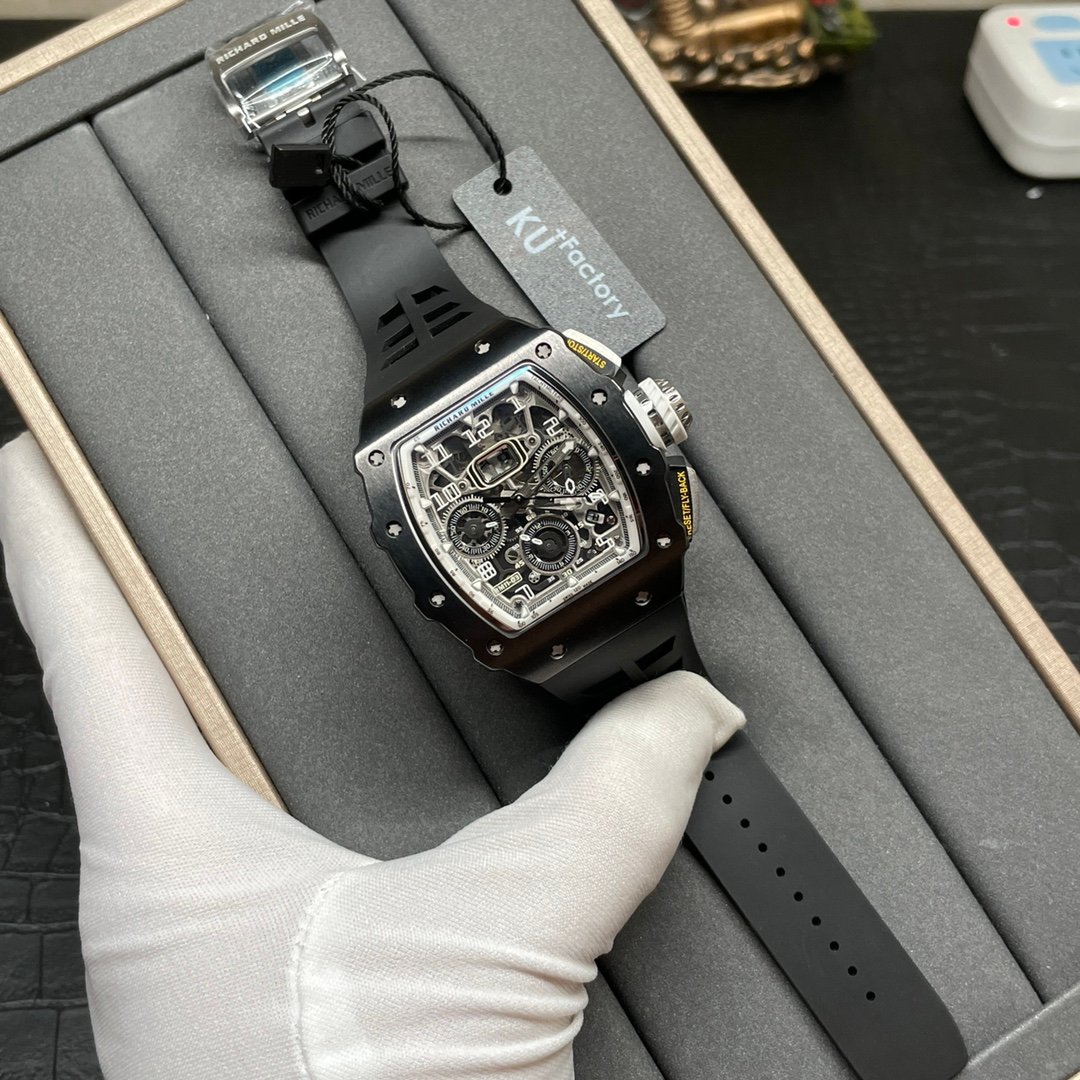 Richard Mille RM 11-03 Replica Black Ceramic Case with Black Rubber Strap | Skeleton Dial Watch For Men — Premium 1:1 super clone. Case: Titanium / carbon composite tonneau case. Crystal: Genuine sapphire crystal front and back. Movement: Clone RM caliber (skeletonized automatic). 12-month movement warranty. Free worldwide shipping on orders over $1,200.