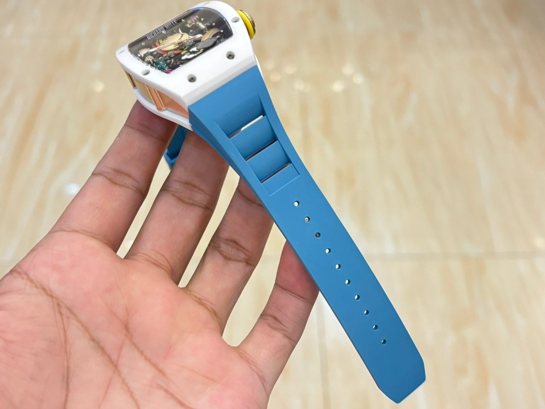 Sized at 39mm, it wears cleanly while still delivering the unmistakable Richard Mille tonneau shape. A Swiss movement, sapphire crystal, and white ceramic construction make it a strong niche option for buyers who want the RM 88 in the rarer blue-strap configuration rather than the black-strap version already in circulation.
