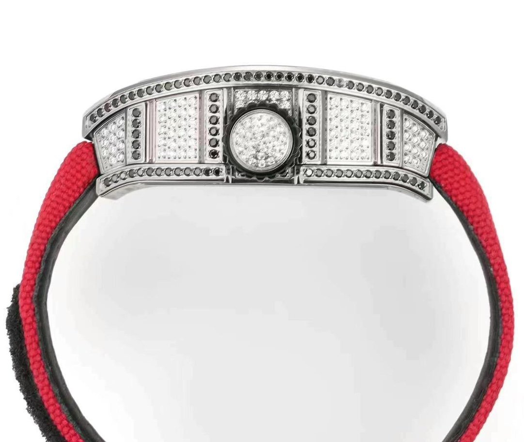 With its diamond-set stainless steel case and bold red and black nylon strap, this watch isn’t just about looking great—it’s about feeling awesome too. The scratch-resistant sapphire crystal and 50-meter water resistance mean it’s built to handle daily wear, but still stands out when you need it to.