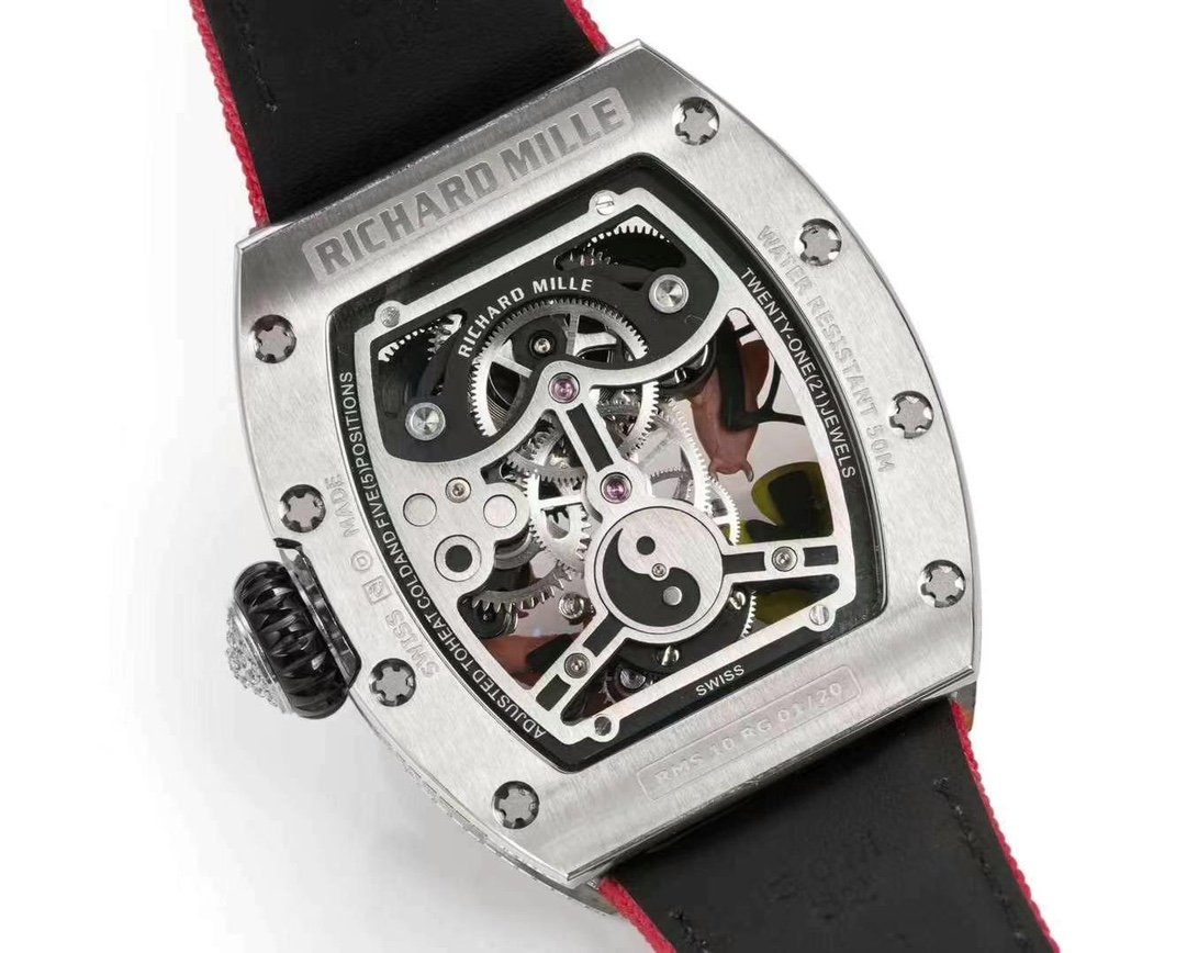 Richard Mille RM S10 Koi Tourbillon Replica – Swiss Movement, Diamond-Set Case, and AAA Quality for the Ultimate Luxury Experience — Premium 1:1 super clone. Case: Titanium / carbon composite tonneau case. Crystal: Genuine sapphire crystal front and back. Movement: Clone RM caliber (skeletonized automatic). 12-month movement warranty. Free worldwide shipping on orders over $1,200.