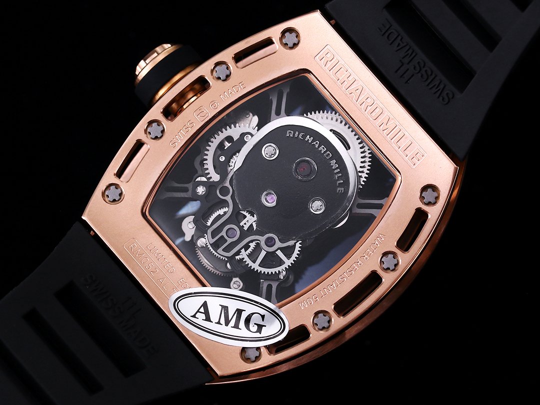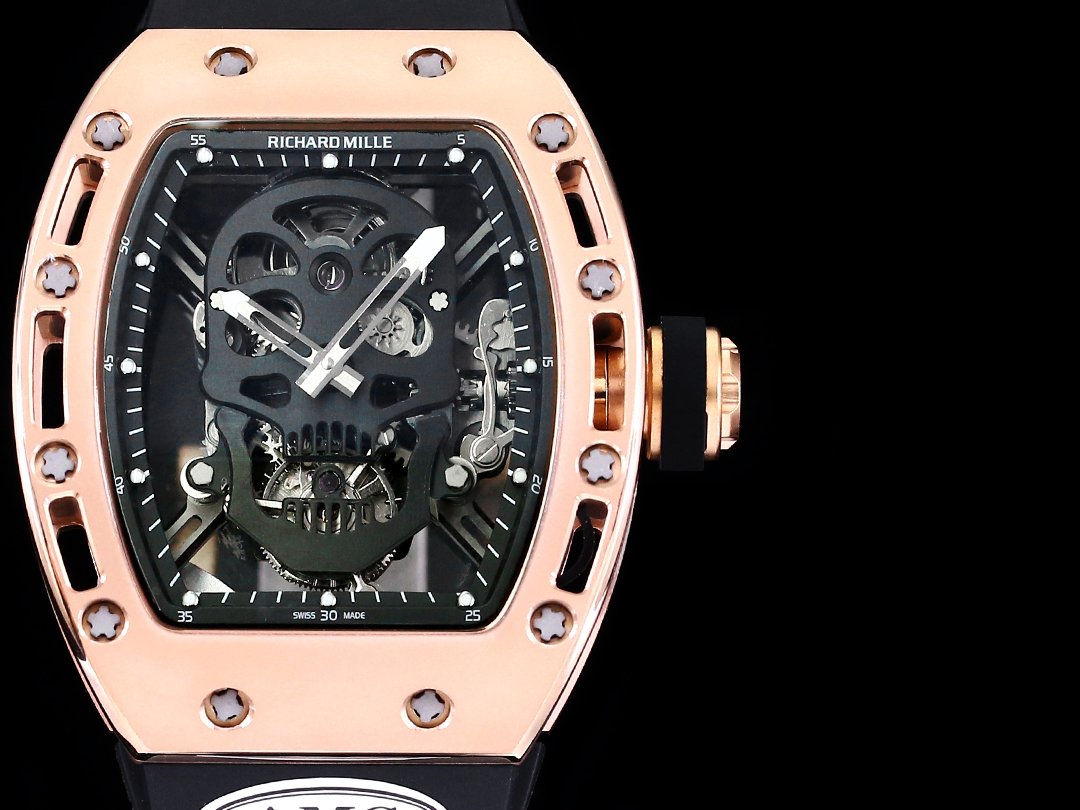 The RM052 Skeleton Tourbillon Replica Watch perfectly blends artistic design with advanced watchmaking craftsmanship. Featuring a bold skull motif set within a sturdy rose gold case, this limited-edition timepiece is a collector’s dream. The skeletonized design with a transparent case back showcases the intricate Swiss movement, highlighting precision and innovation. The aviation steel metal case ensures durability, while the black rubber strap adds comfort and a modern touch. With sapphire glass and 50 meters of water resistance, this Super Clone watch offers both style and functionality. A must-have for those seeking a unique, high-quality luxury replica.