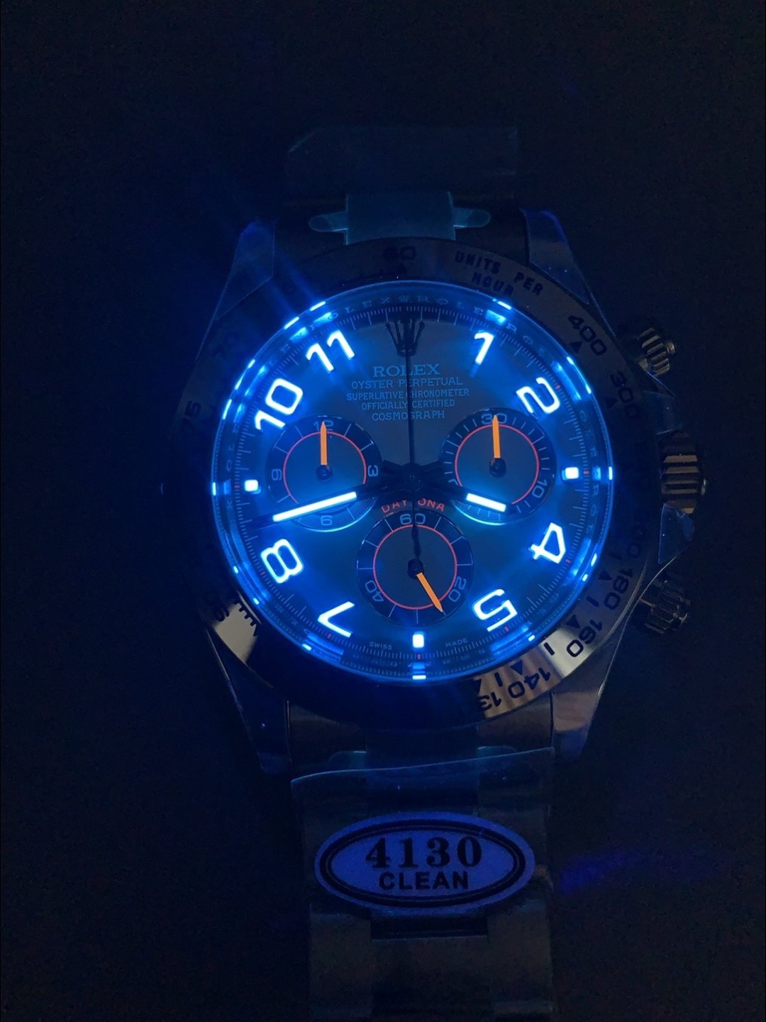 The Best Rolex Daytona Model Replicated up to Date. The First Rolex model to adopt a 904L Steel on Casing and Strap which is the same steel used by Rolex. Compared with an Original Side by Side and there were NO Differences Whatsoever. Complete list of details have been stated below and you will see that tremendous amount of detaiing and work has been put into this edition.