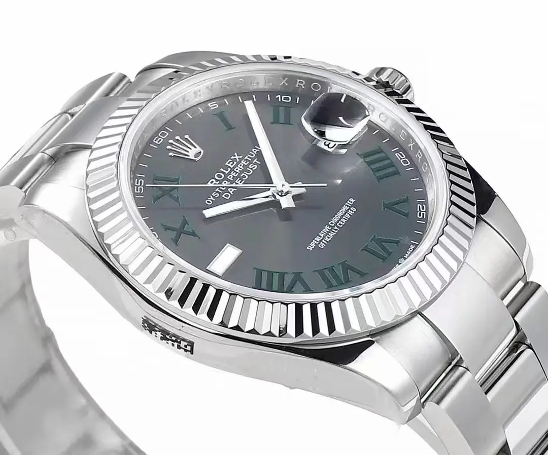 Rolex Datejust 41mm – Silver Stainless Steel with Grey Dial — Premium 1:1 super clone. Case: 904L stainless steel case and bracelet. Crystal: Genuine sapphire crystal with AR coating. Movement: Clone Cal. 3235 (28,800 bph, 70hr power reserve). 12-month movement warranty. Free worldwide shipping on orders over $1,200.