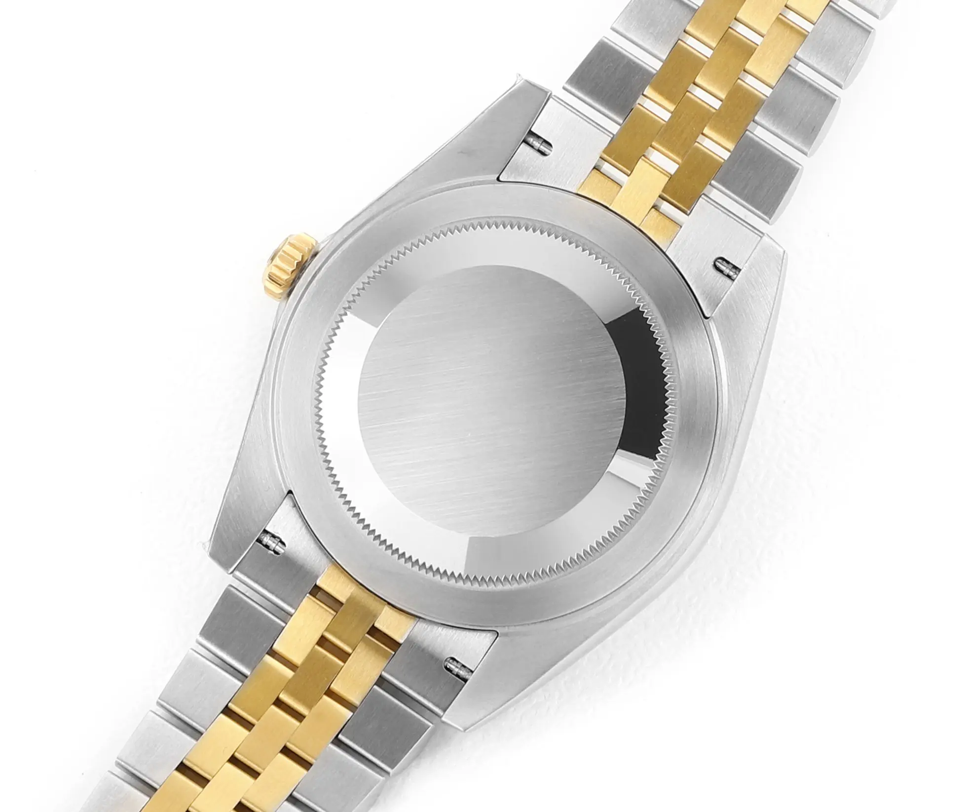 - Material: Made of 904L stainless-steel, which is known for its corrosion-resistance and durability. It has a gold-and-steel finish.