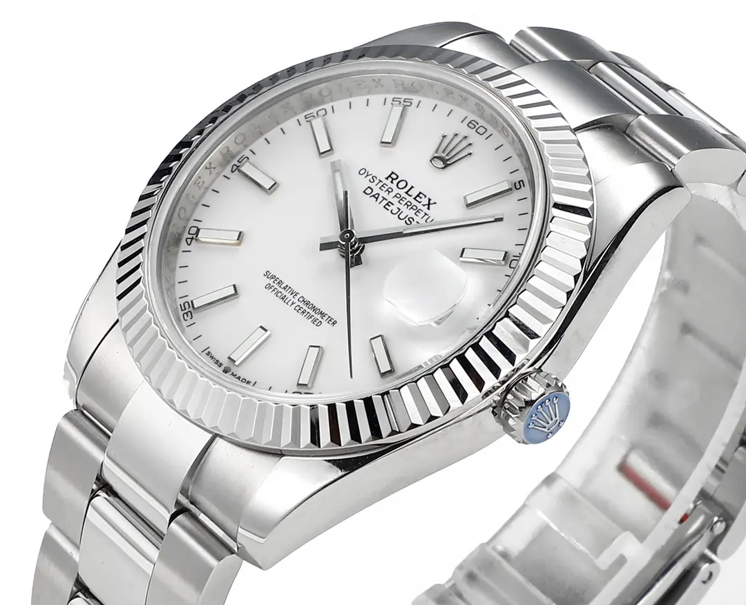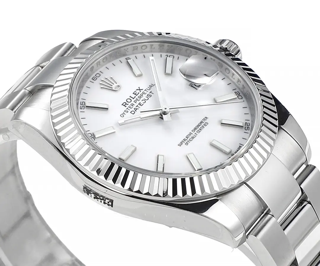 Rolex Datejust Silver Fluted Bezel Stainless Steel Watch with New 3235 Movement – Collectio — Premium 1:1 super clone. Case: 904L stainless steel case and bracelet. Crystal: Genuine sapphire crystal with AR coating. Movement: Clone Cal. 3235 (28,800 bph, 70hr power reserve). 12-month movement warranty. Free worldwide shipping on orders over $1,200.