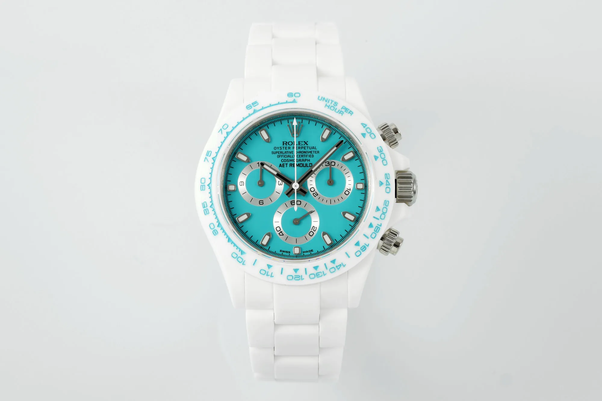 Rolex Daytona Ceramic Watch – White Strap, Turquoise Dial