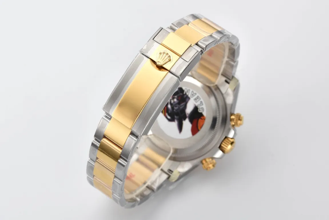 • The Rolex Daytona has a two-tone, sophisticated design that combines stainless steel with yellow gold to create a luxurious appearance.