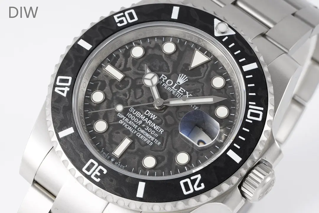 Enjoy the ROLEX DIW Submariner ParAKEET’s unique design with its black carbon fibre dial and construction of 904L stainless Steel. The watch is a combination of distinctive design and reliable performance, crafted as a.