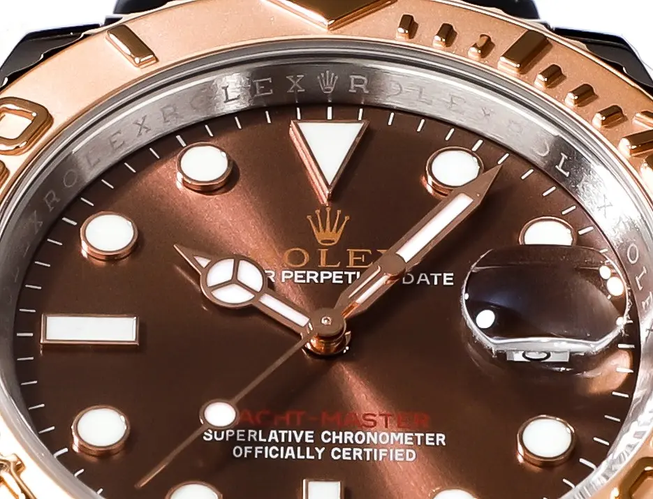 Rolex Yacht-Master 42 Rose Gold & Stainless Steel Brown Dial — Premium 1:1 super clone. Case: 904L stainless steel case and bracelet. Crystal: Genuine sapphire crystal with AR coating. Movement: Clone Rolex caliber (28,800 bph automatic). 12-month movement warranty. Free worldwide shipping on orders over $1,200.