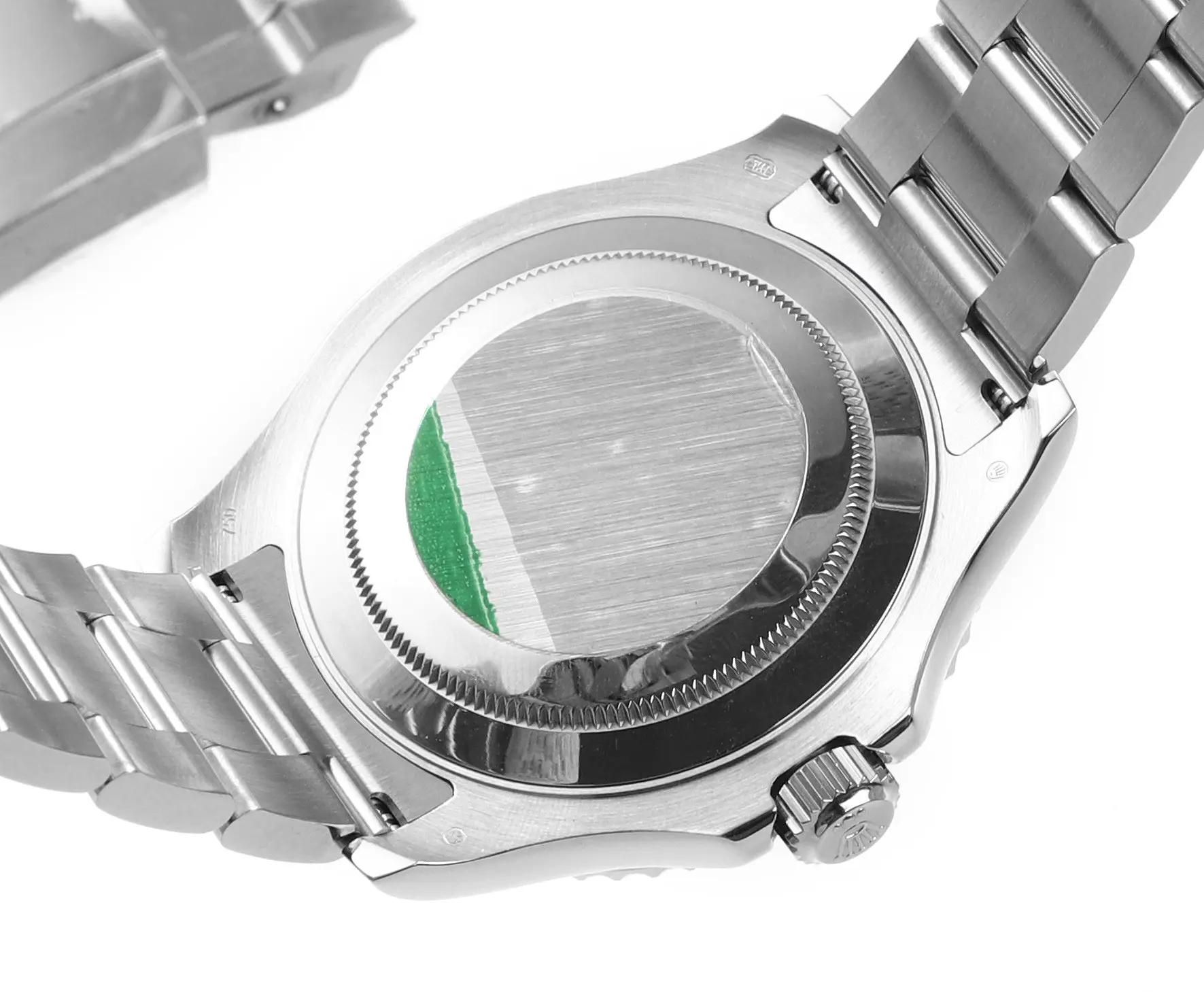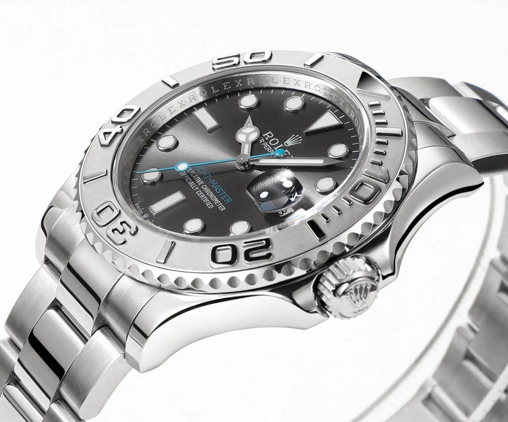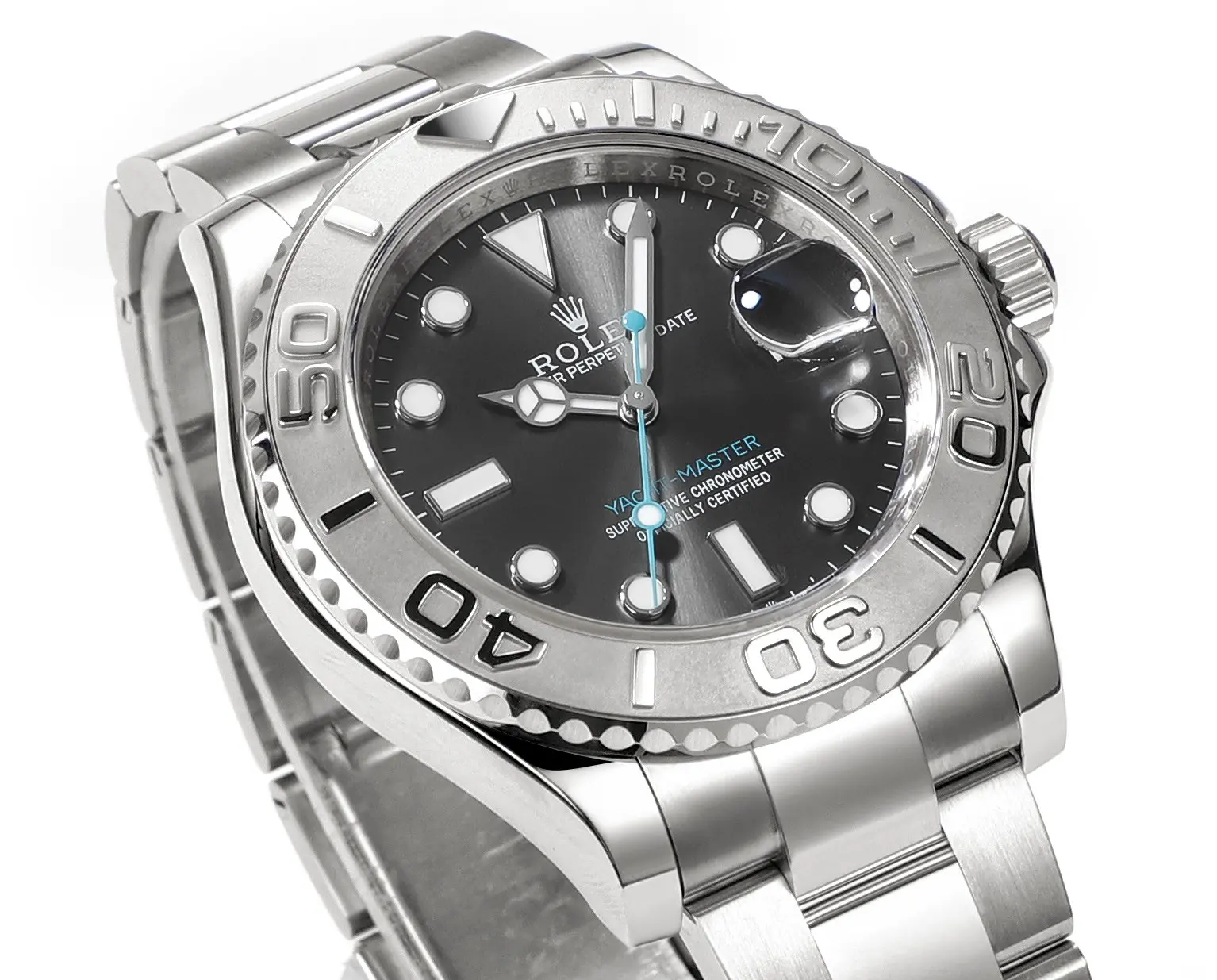 Rolex Yacht-Master 42 Stainless Steel Watch with Black Dial — Premium 1:1 super clone. Case: 904L stainless steel case and bracelet. Crystal: Genuine sapphire crystal with AR coating. Movement: Clone Rolex caliber (28,800 bph automatic). 12-month movement warranty. Free worldwide shipping on orders over $1,200.